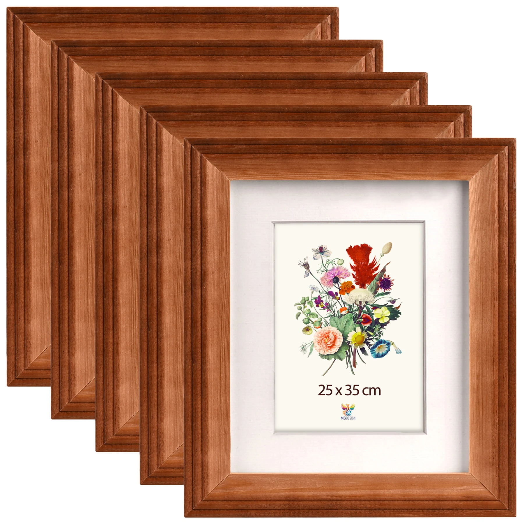 Set of 5 Brown milled photo frames 10 x 14 in (25 x 35 cm), made of wood