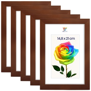 Set of 5 Brown photo frames A5 6 x 8 in (15 x 21 cm), made of natural wood