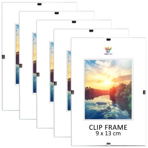 The set includes 5 clip frames with acrylic front, HDF backboard, metal clips and hangers – a clean, elegant framing solution for modern and classic interiors alike.