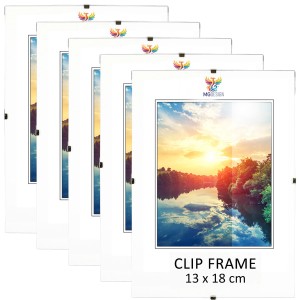 The set includes 5 clip frames with acrylic front, HDF backboard, metal clips and hangers – a clean, elegant framing solution for modern and classic interiors alike.