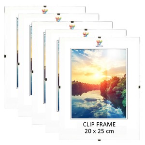 The set includes 5 clip frames with acrylic front, HDF backboard, metal clips and hangers – a clean, elegant framing solution for modern and classic interiors alike.