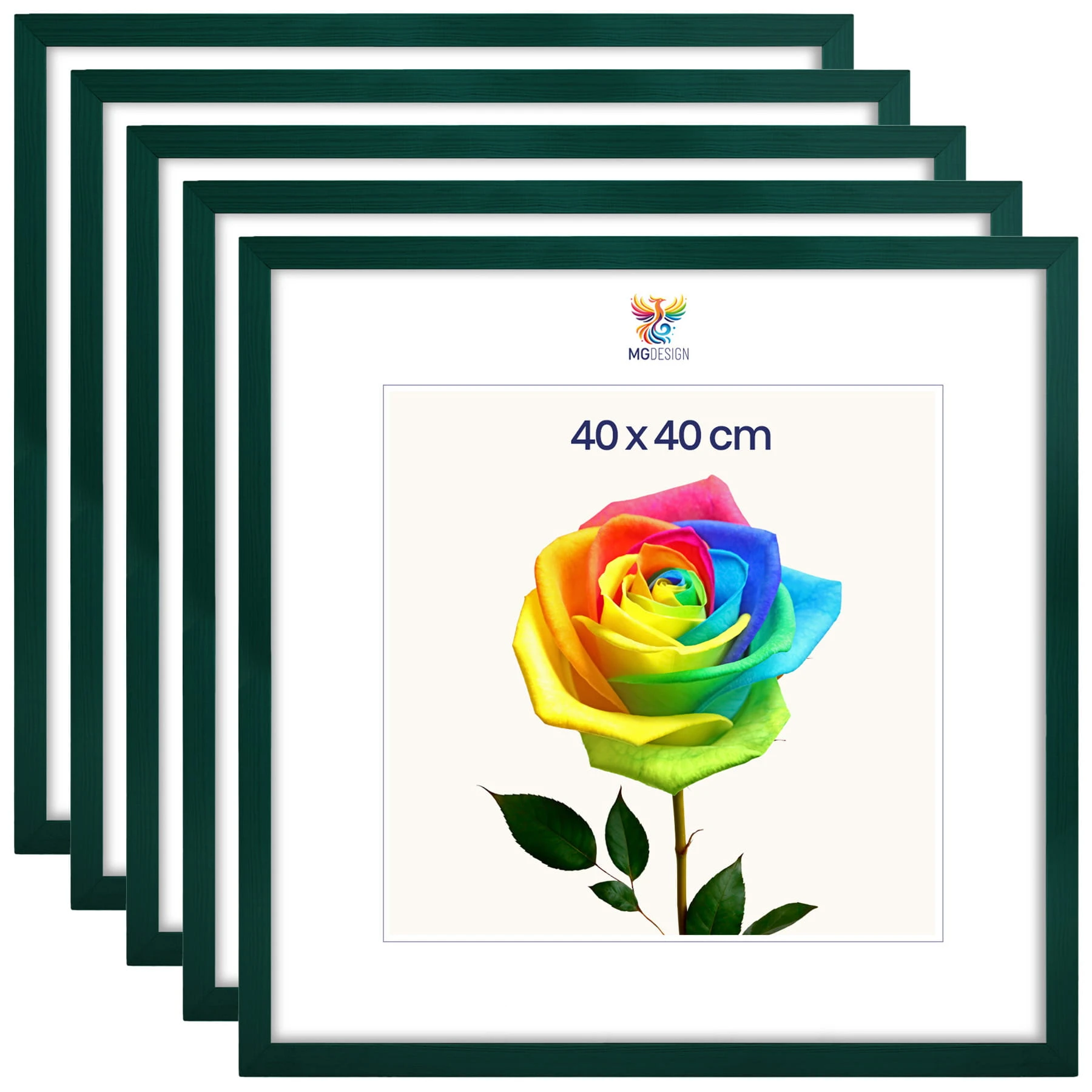 Set of 5 Green photo frames 16 x 16 in (40 x 40 cm), made of natural wood