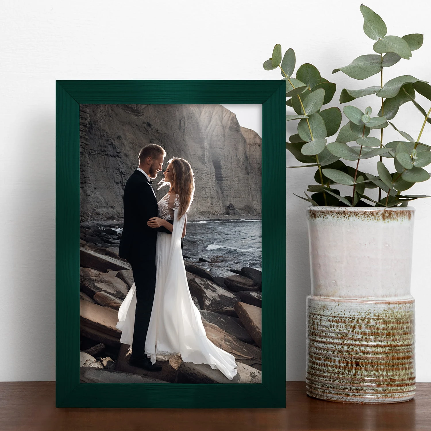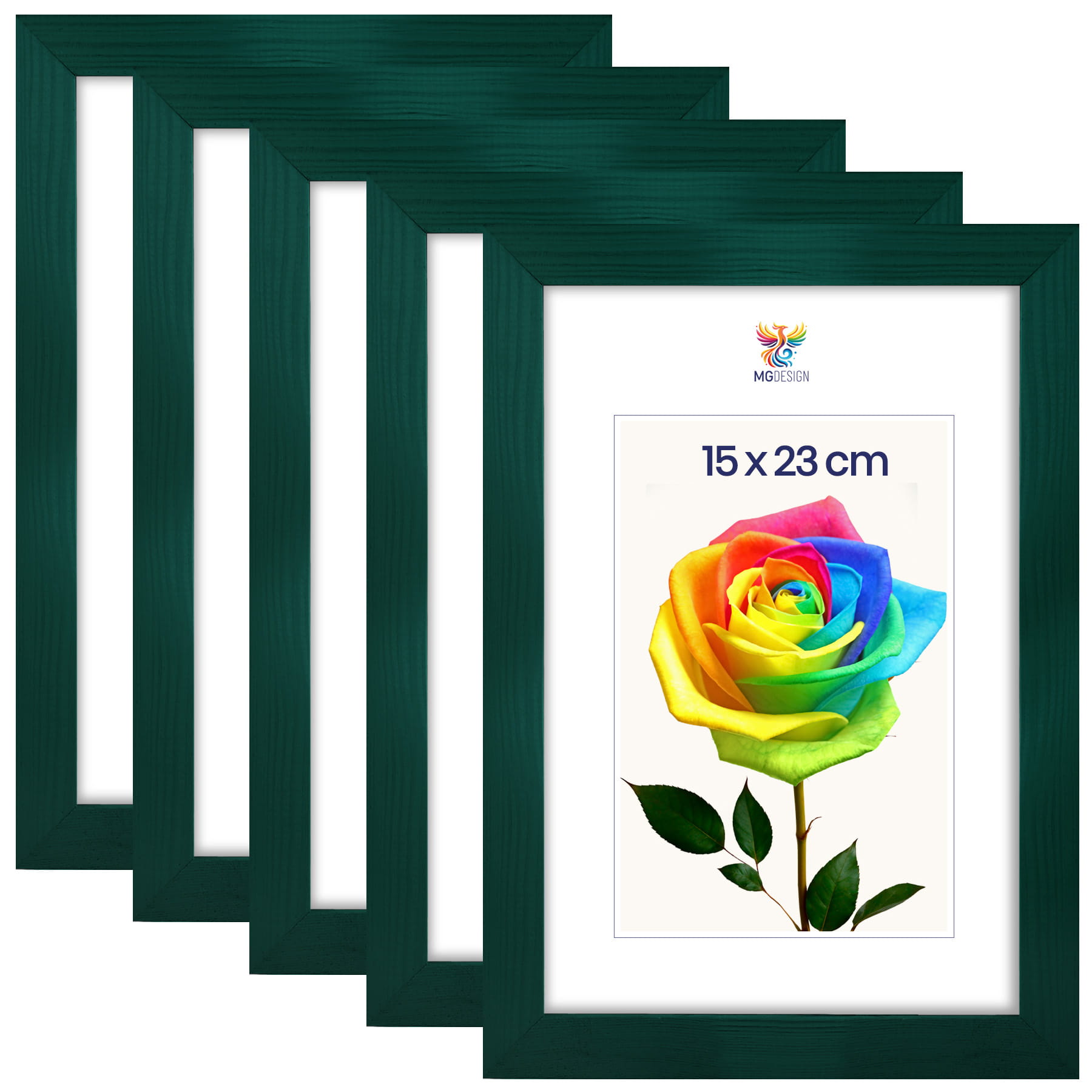 Set of 5 Green photo frames 6 x 9 in (15 x 23 cm), made of natural wood