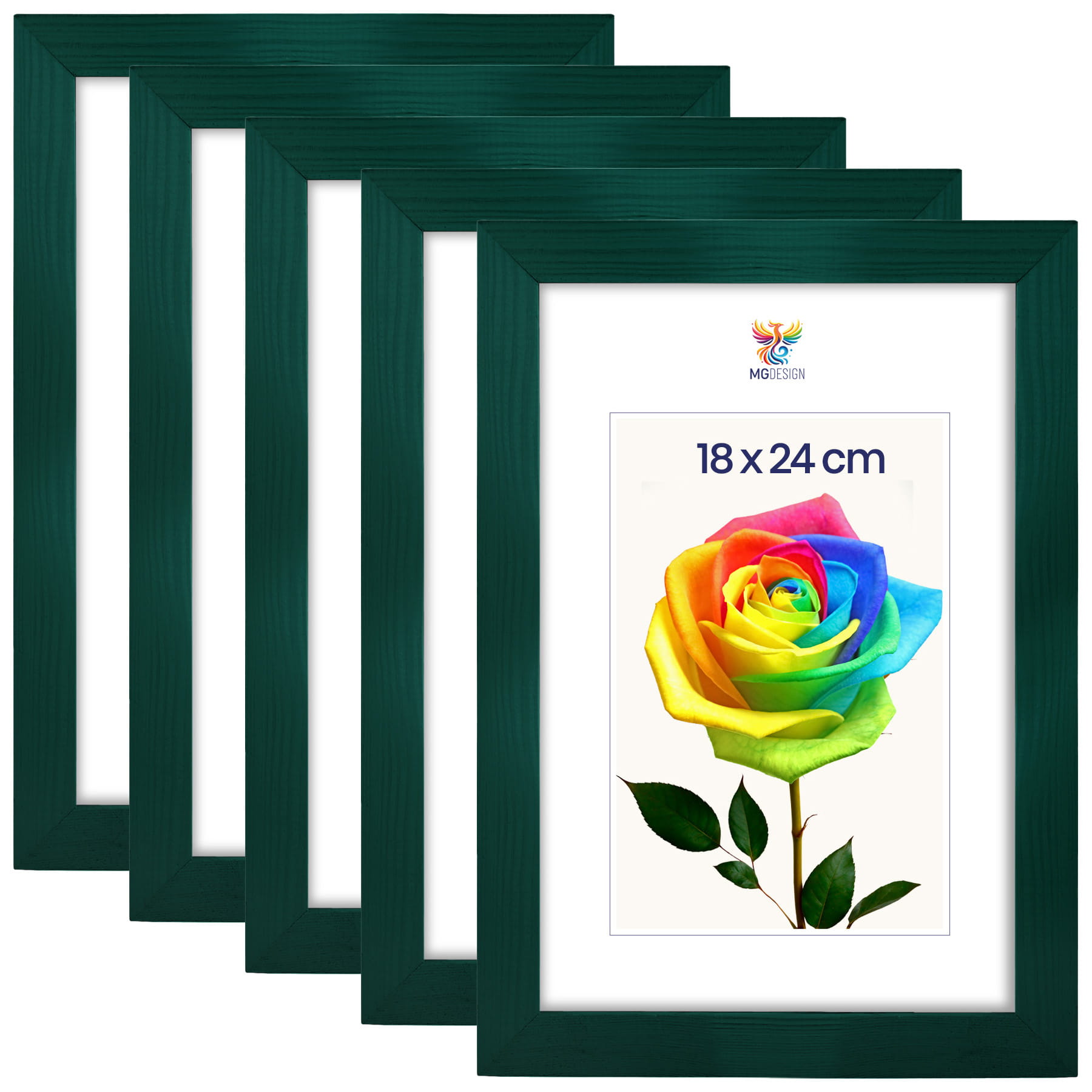 Set of 5 Green photo frames 7 x 9 in (18 x 24 cm), made of natural wood