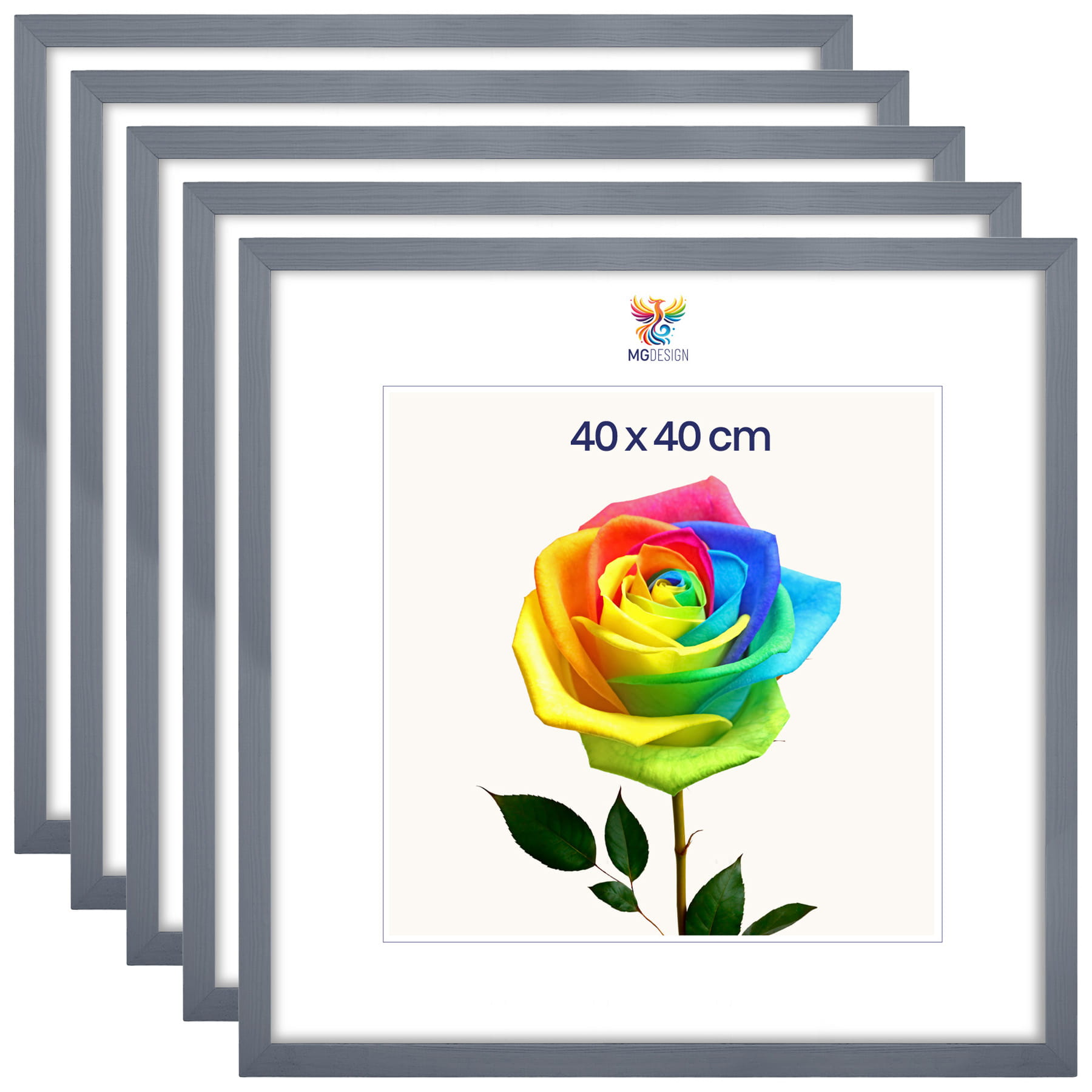 Set of 5 Grey photo frames 16 x 16 in (40 x 40 cm), made of natural wood