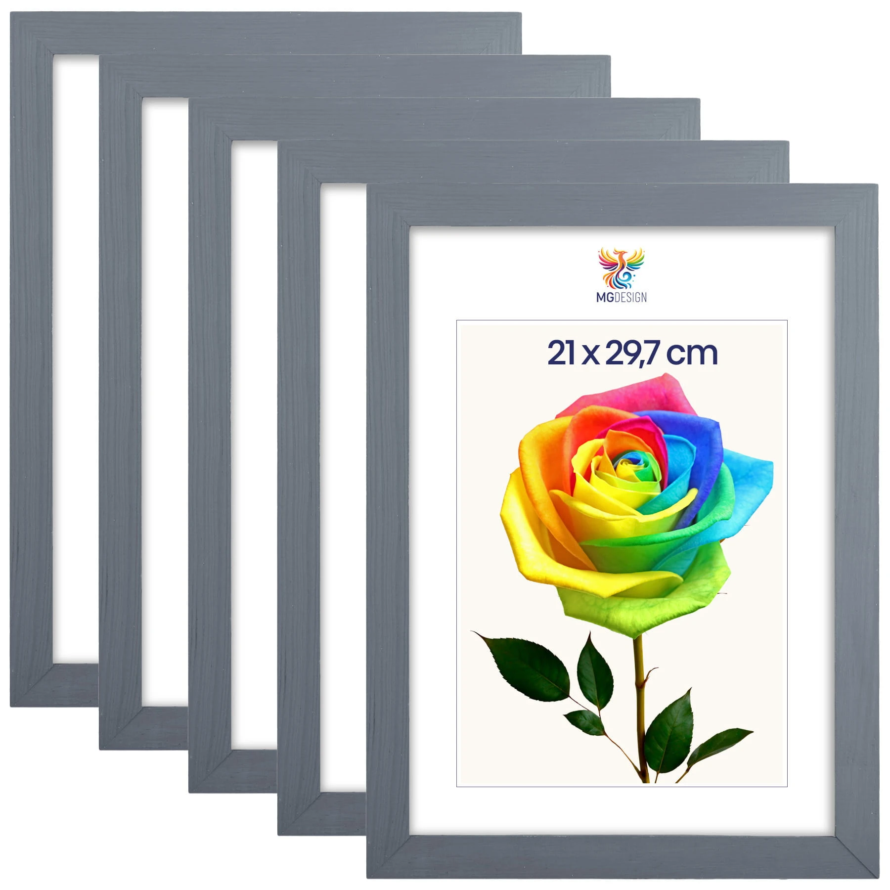 Set of 5 Grey photo frames A4 8 x 12 in (21 x 29,7 cm), made of natural wood