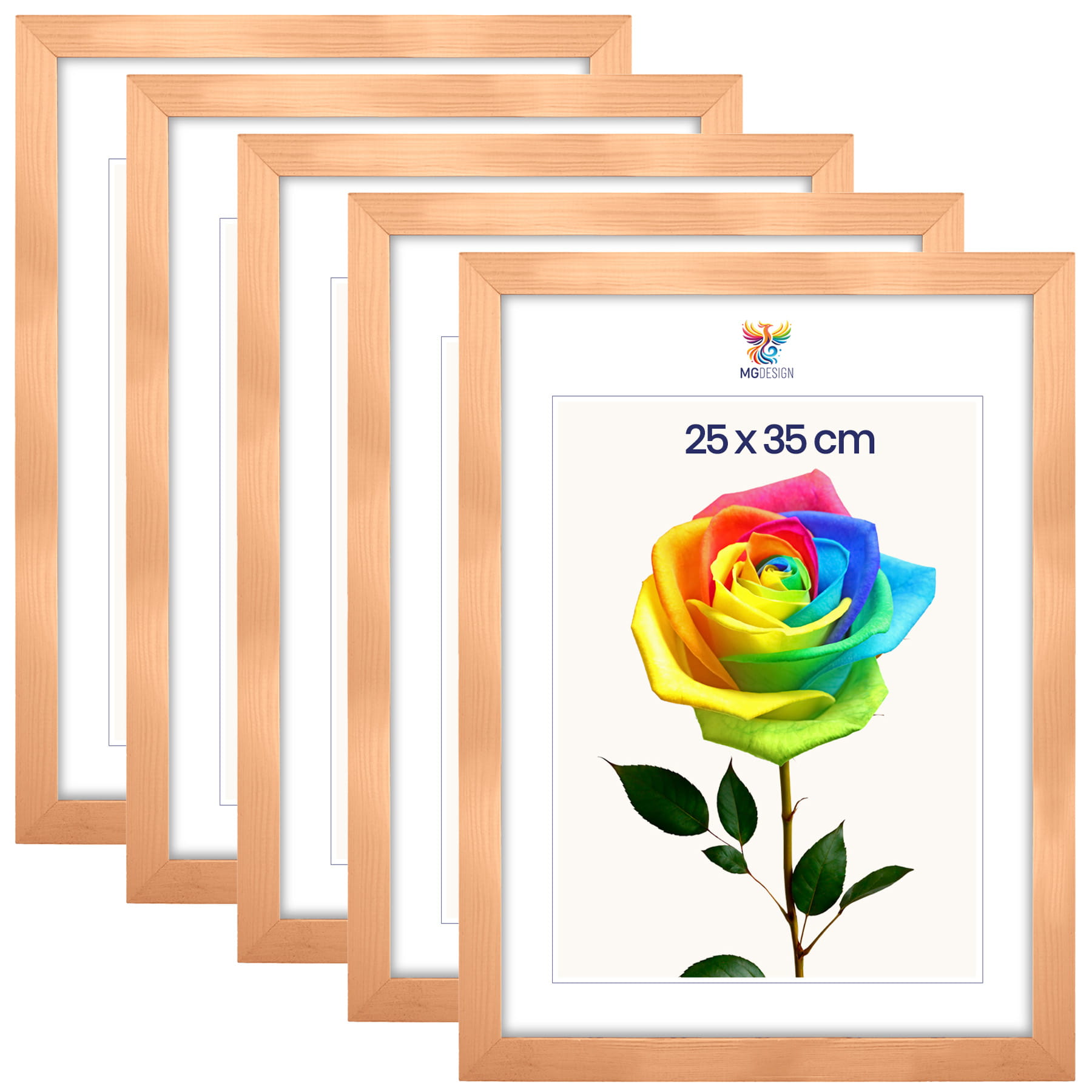 Set of 5 Natural photo frames 10 x 14 in (25 x 35 cm), made of wood