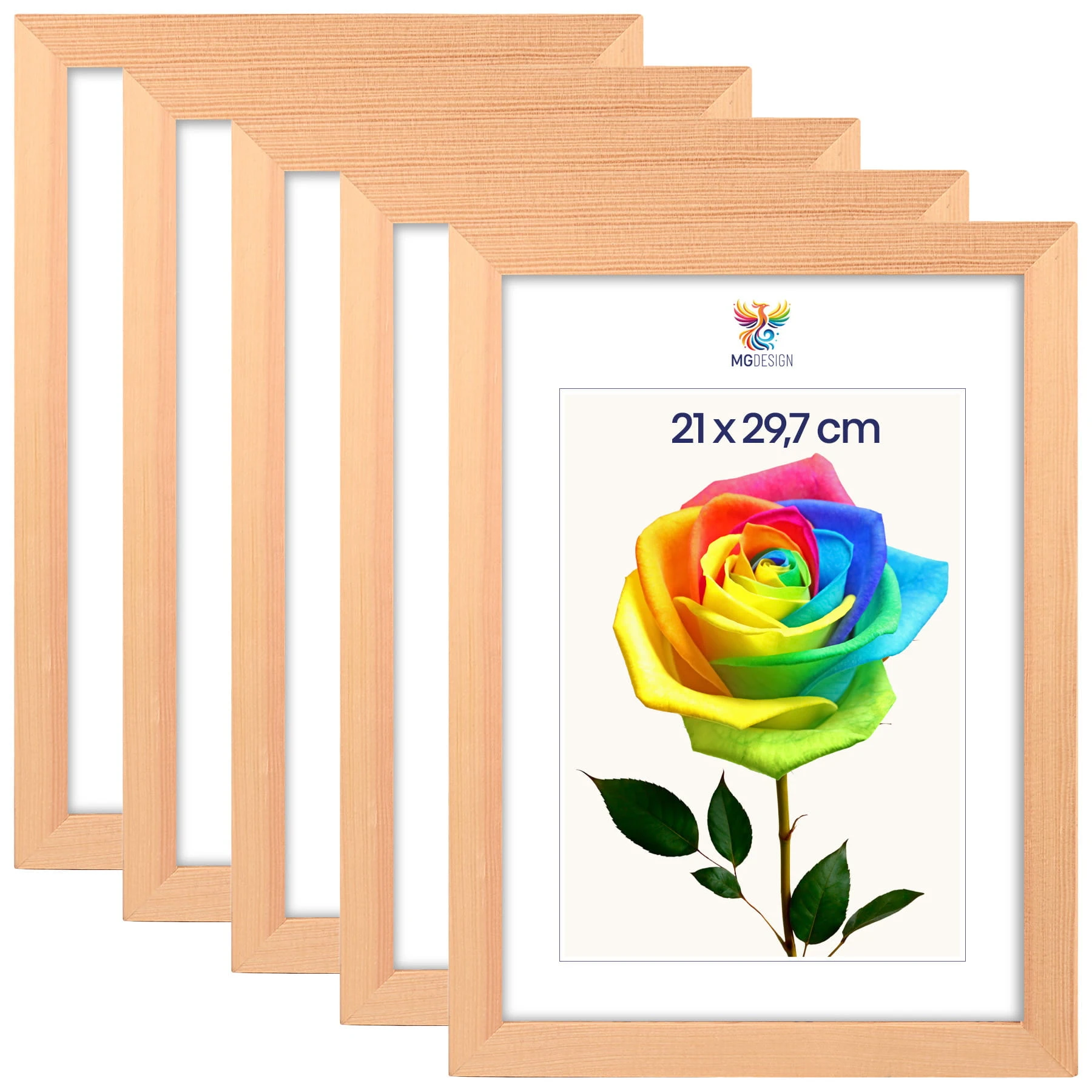 Set of 5 Natural photo frames A4 8 x 12 in (21 x 29,7 cm), made of wood