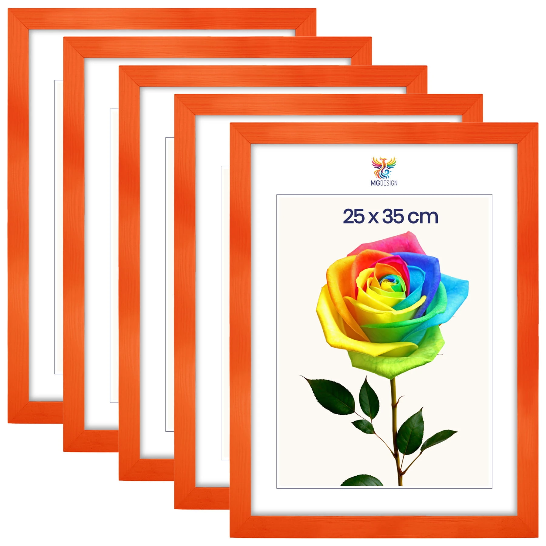 Set of 5 Orange photo frames 10 x 14 in (25 x 35 cm), made of natural wood