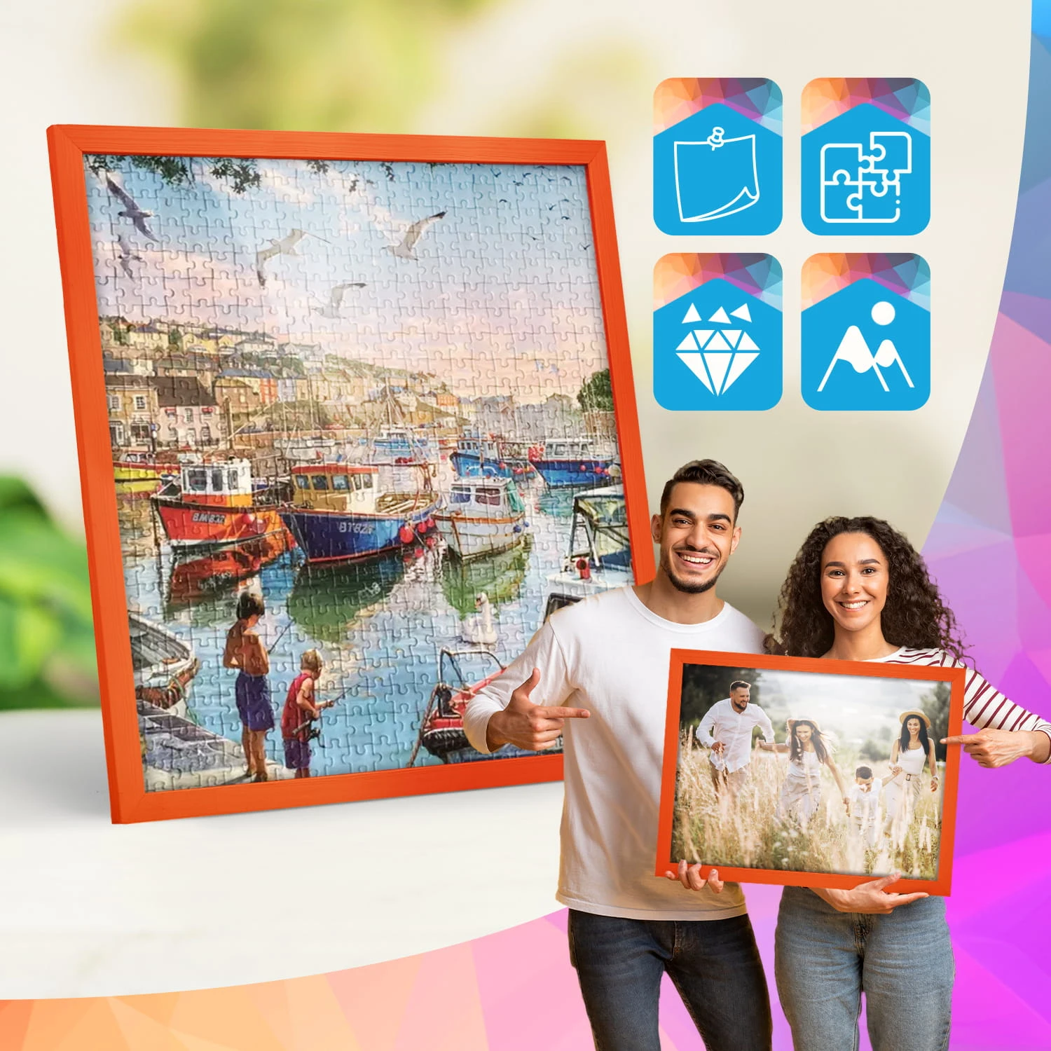 Set of 5 Orange photo frames 12 x 12 in (30 x 30 cm), made of natural wood