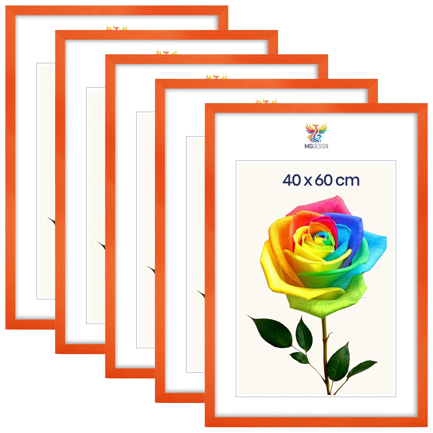 Set of 5 Orange photo frames 16 x 24 in (40 x 60 cm), made of natural wood