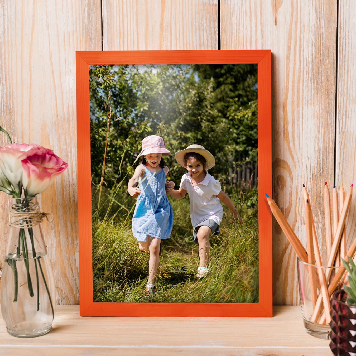 Set of 5 Orange photo frames 8 x 10 in (20 x 25 cm), made of natural wood