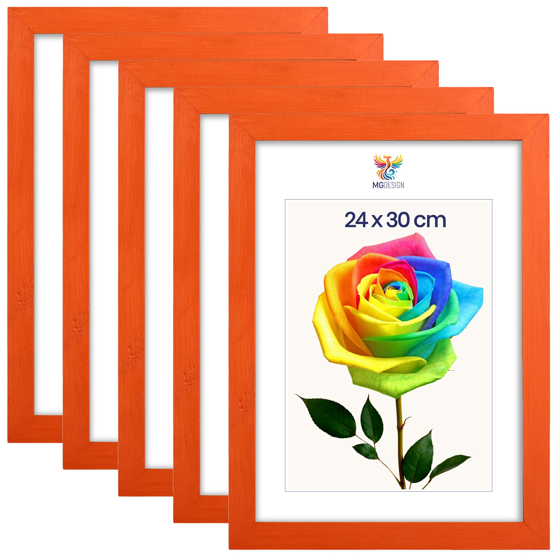Set of 5 Orange photo frames 9 x 12 in (24 x 30 cm), made of natural wood