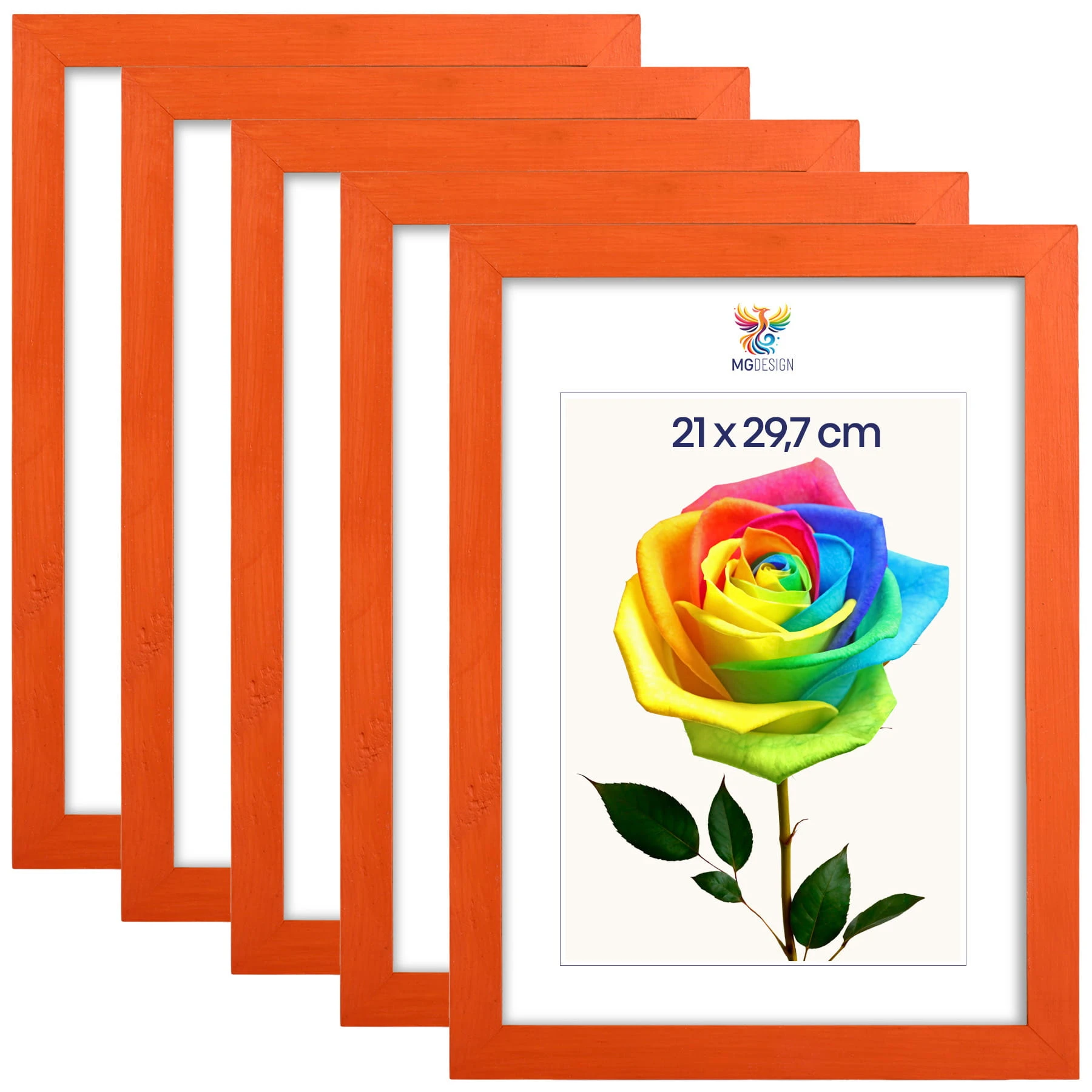 Set of 5 Orange photo frames A4 8 x 12 in (21 x 29,7 cm), made of natural wood