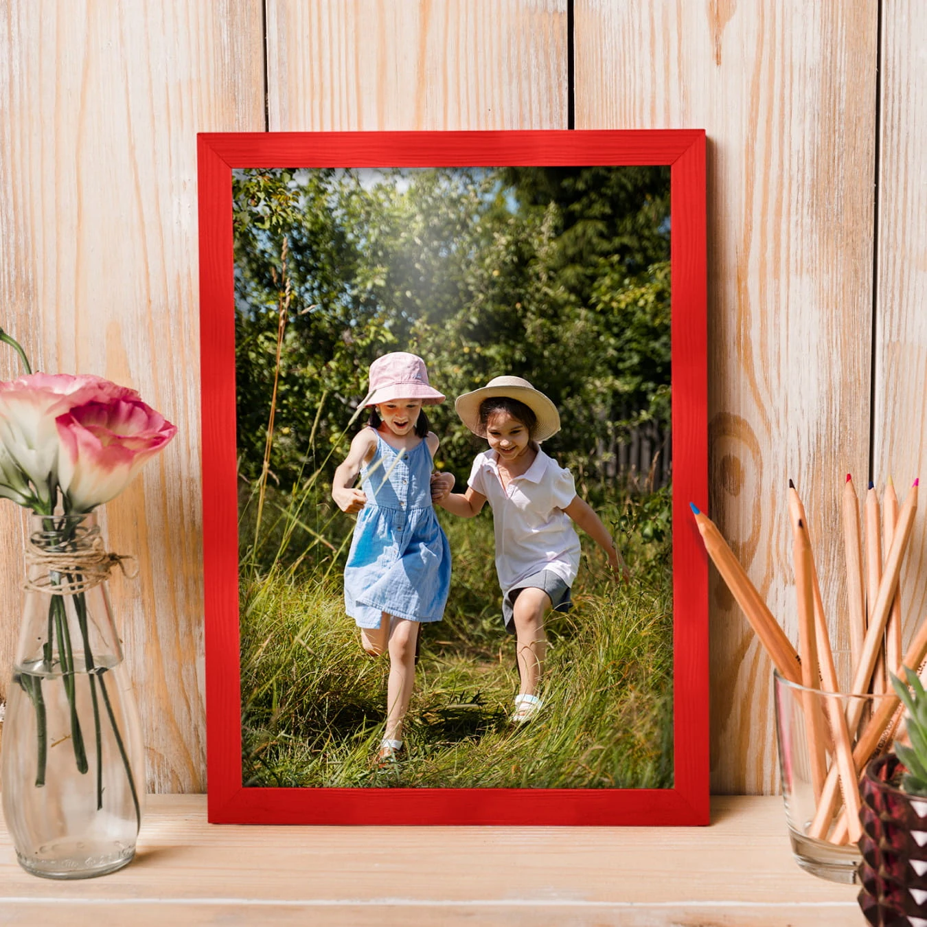 Set of 5 Red photo frames 8 x 10 in (20 x 25 cm), made of natural wood