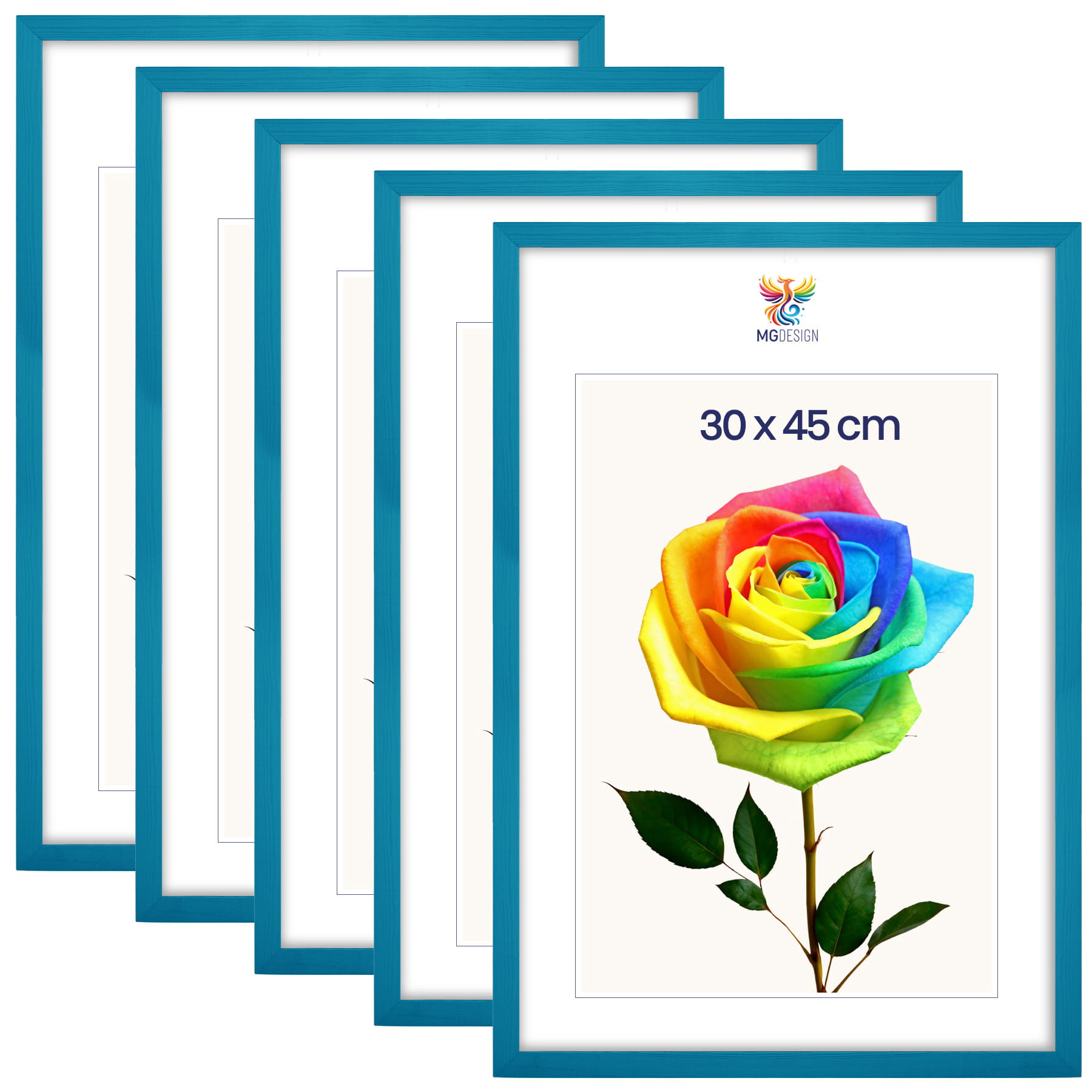Set of 5 Turquoise photo frames 12 x 18 in (30 x 45 cm), made of natural wood