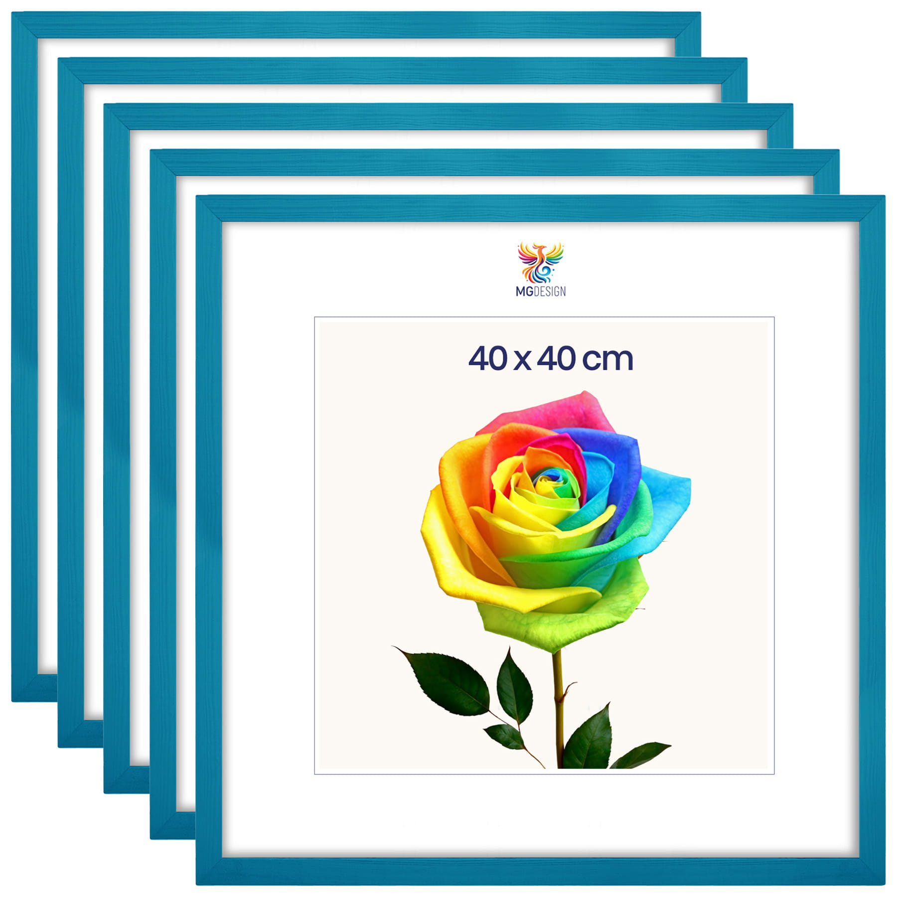 Set of 5 Turquoise photo frames 16 x 16 in (40 x 40 cm), made of natural wood