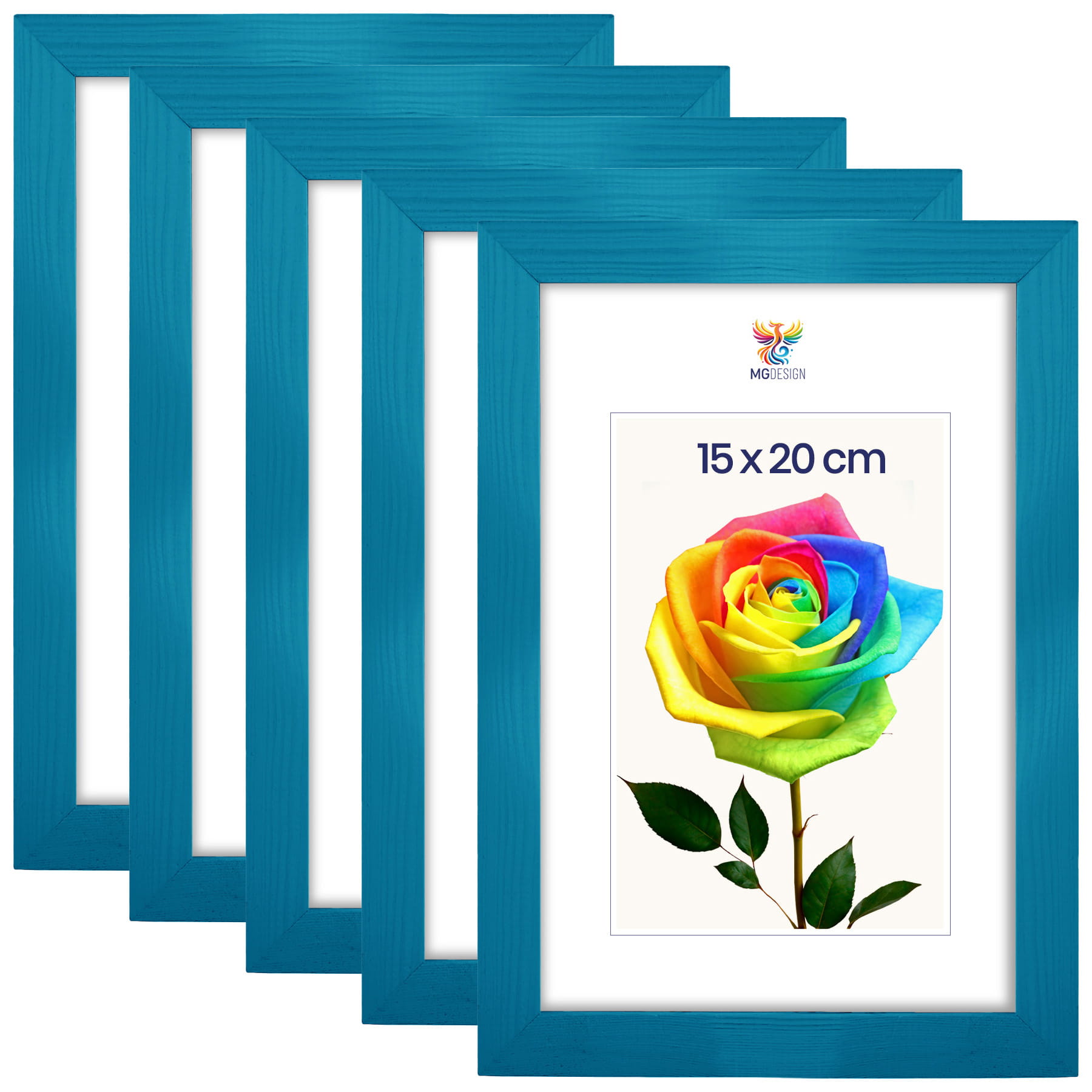 Set of 5 Turquoise photo frames 6 x 8 in (15 x 20 cm), made of natural wood