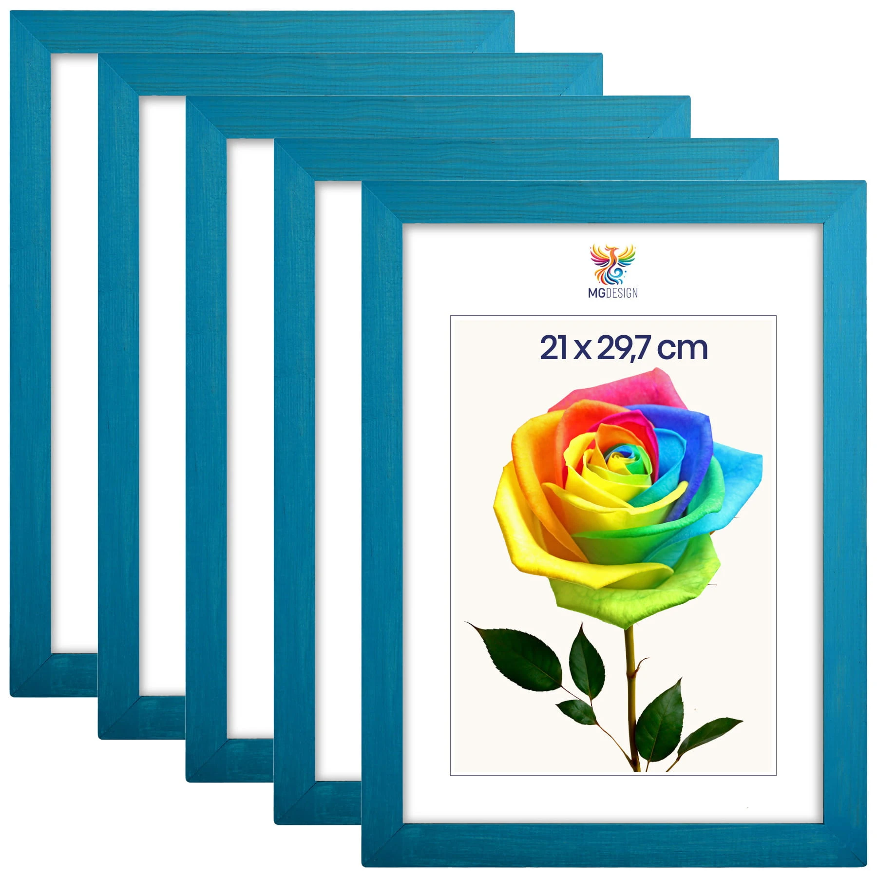 Set of 5 Turquoise photo frames A4 8 x 12 in (21 x 29,7 cm), made of natural wood
