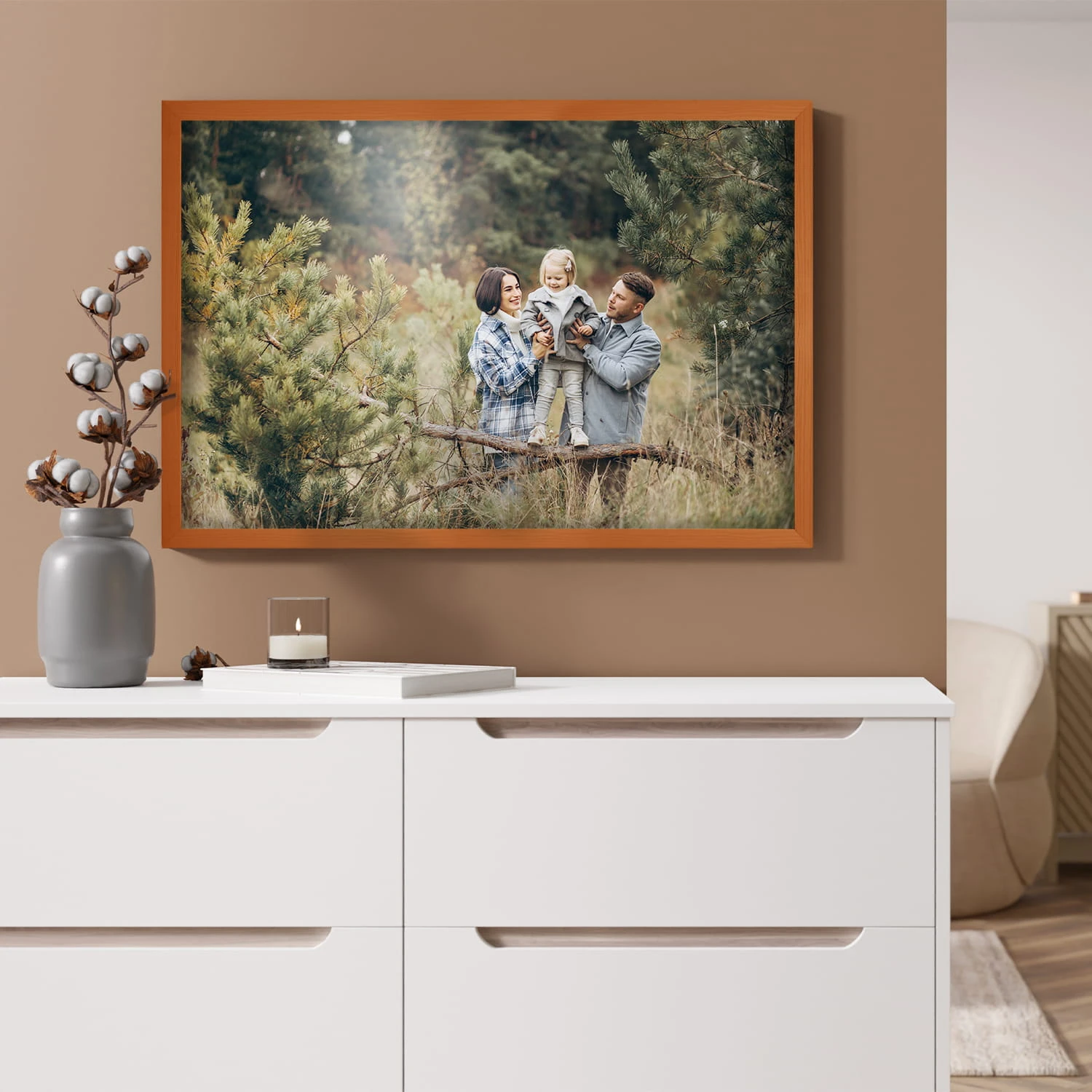 The frames are made of natural wood, carefully processed to preserve the visible structure of the material, which gives the whole a natural and timeless character. The front of the frames is made of lightweight and damage-resistant plexiglass, which is a safer alternative to traditional glass and ensures good visibility of the framed works.