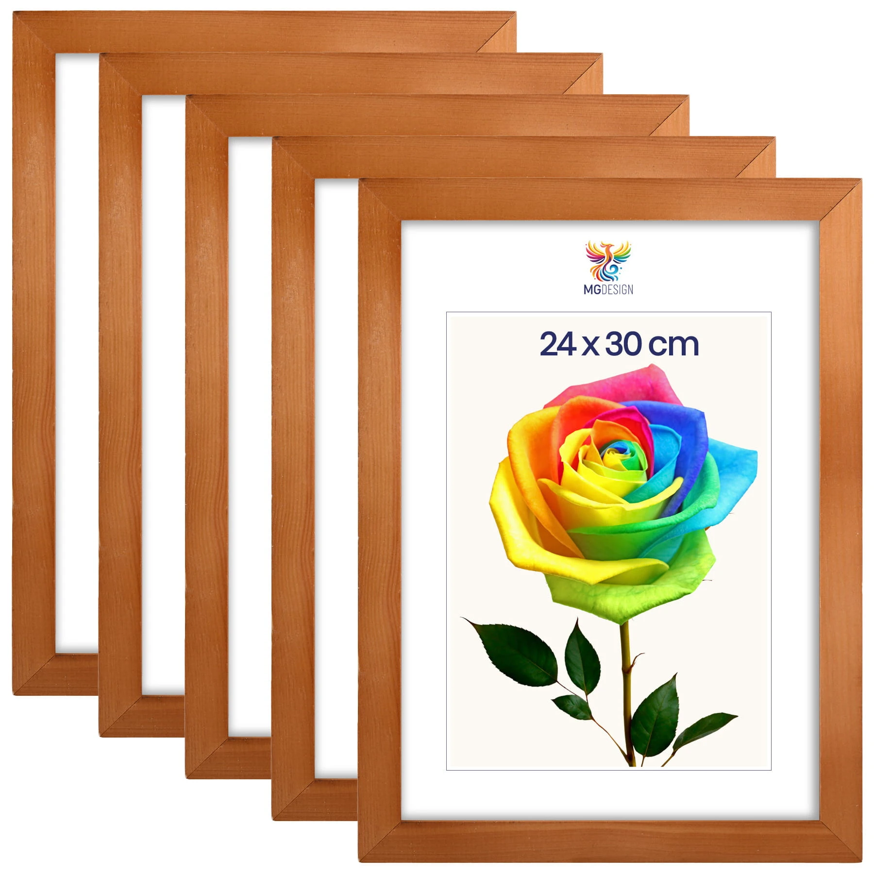 Set of 5 Varnished photo frames 9 x 12 in (24 x 30 cm), made of natural wood