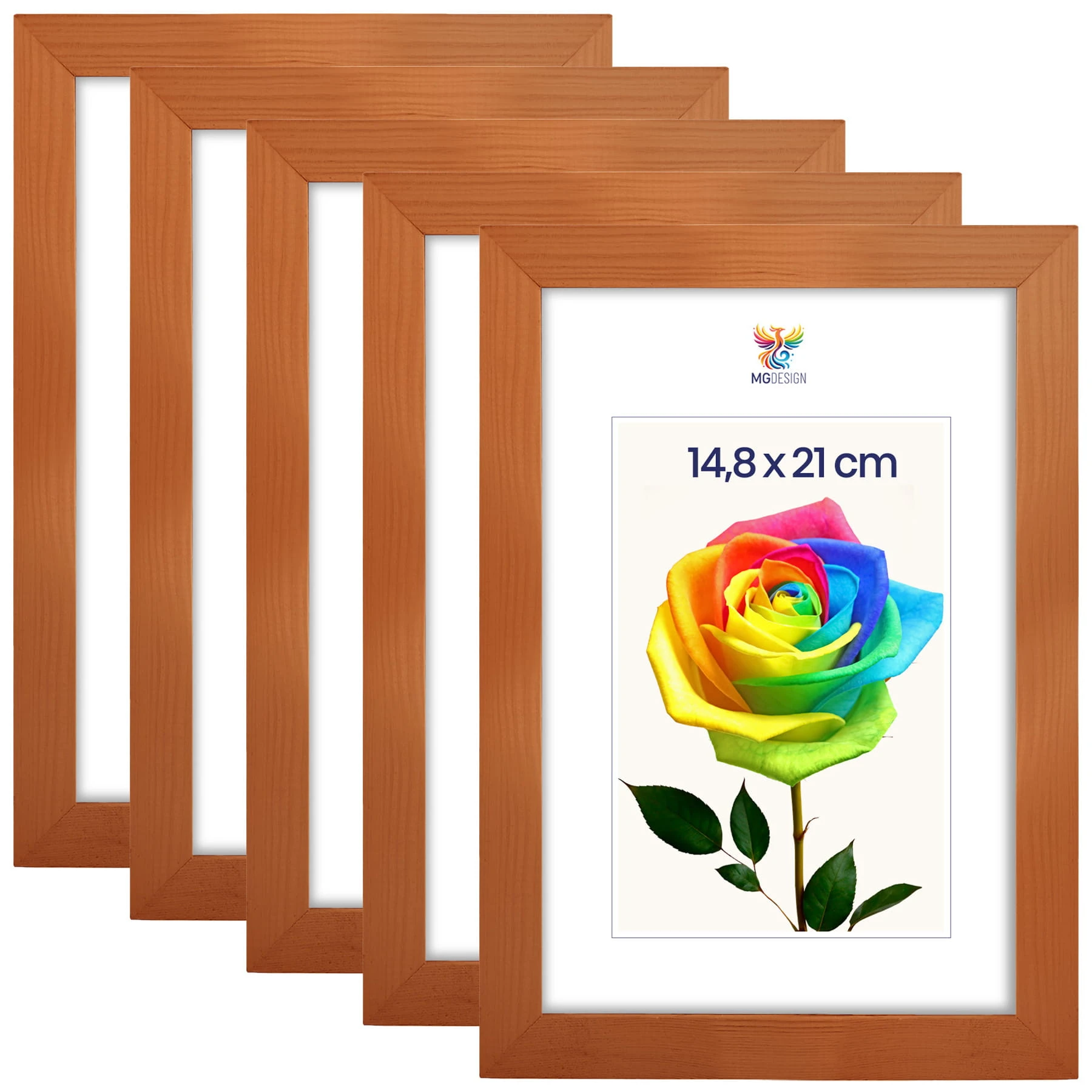 Set of 5 Varnished photo frames A5 6 x 8 in (15 x 21 cm), made of natural wood