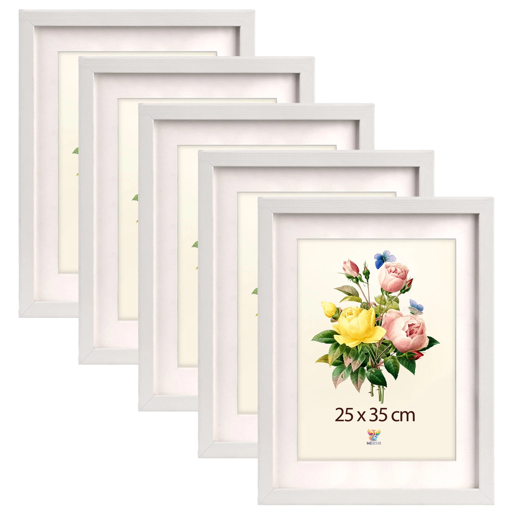 Set of 5 White deep photo frames 10 x 14 in (25 x 35 cm), made of wood
