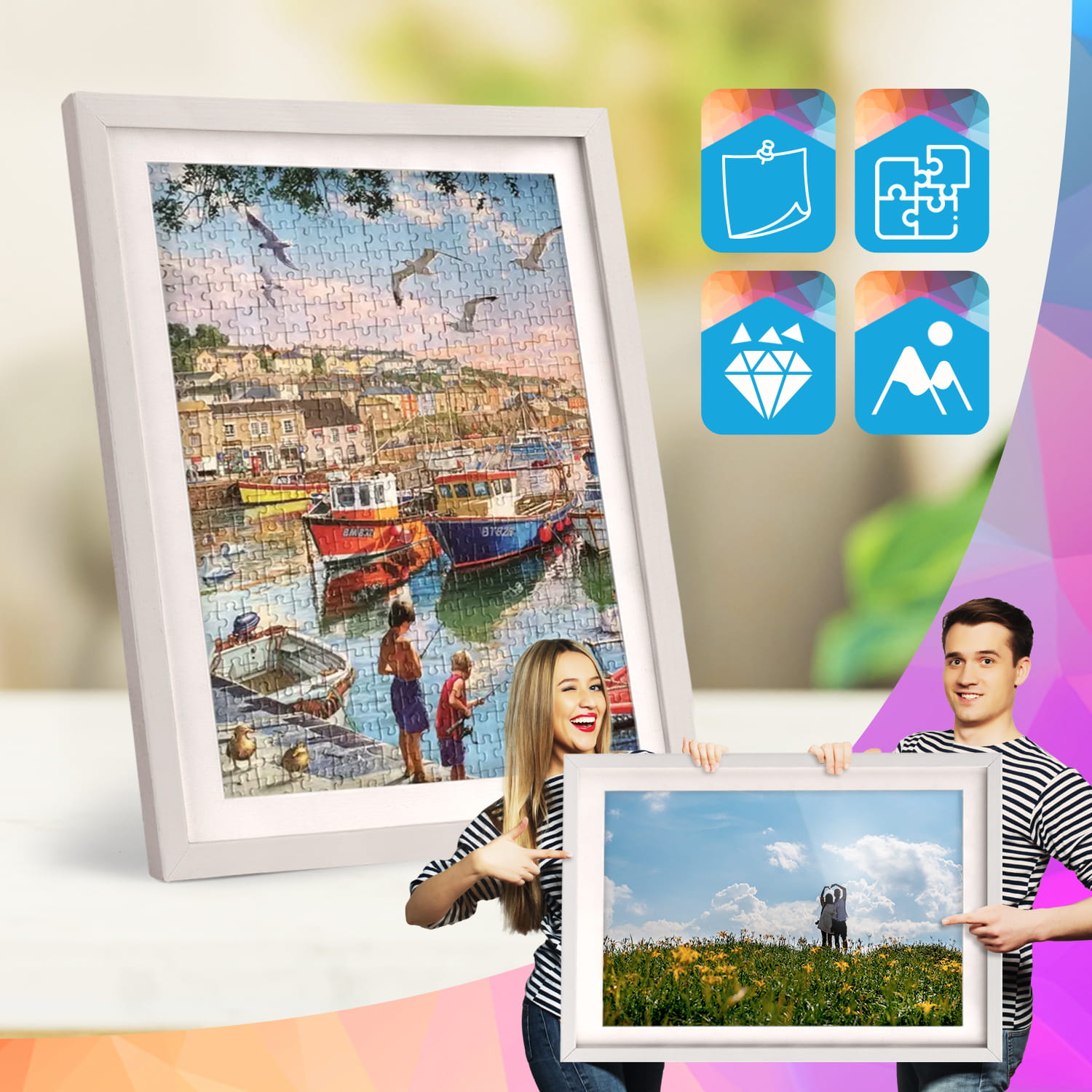 Set of 5 White deep photo frames 16 x 24 in (40 x 60 cm), made of wood