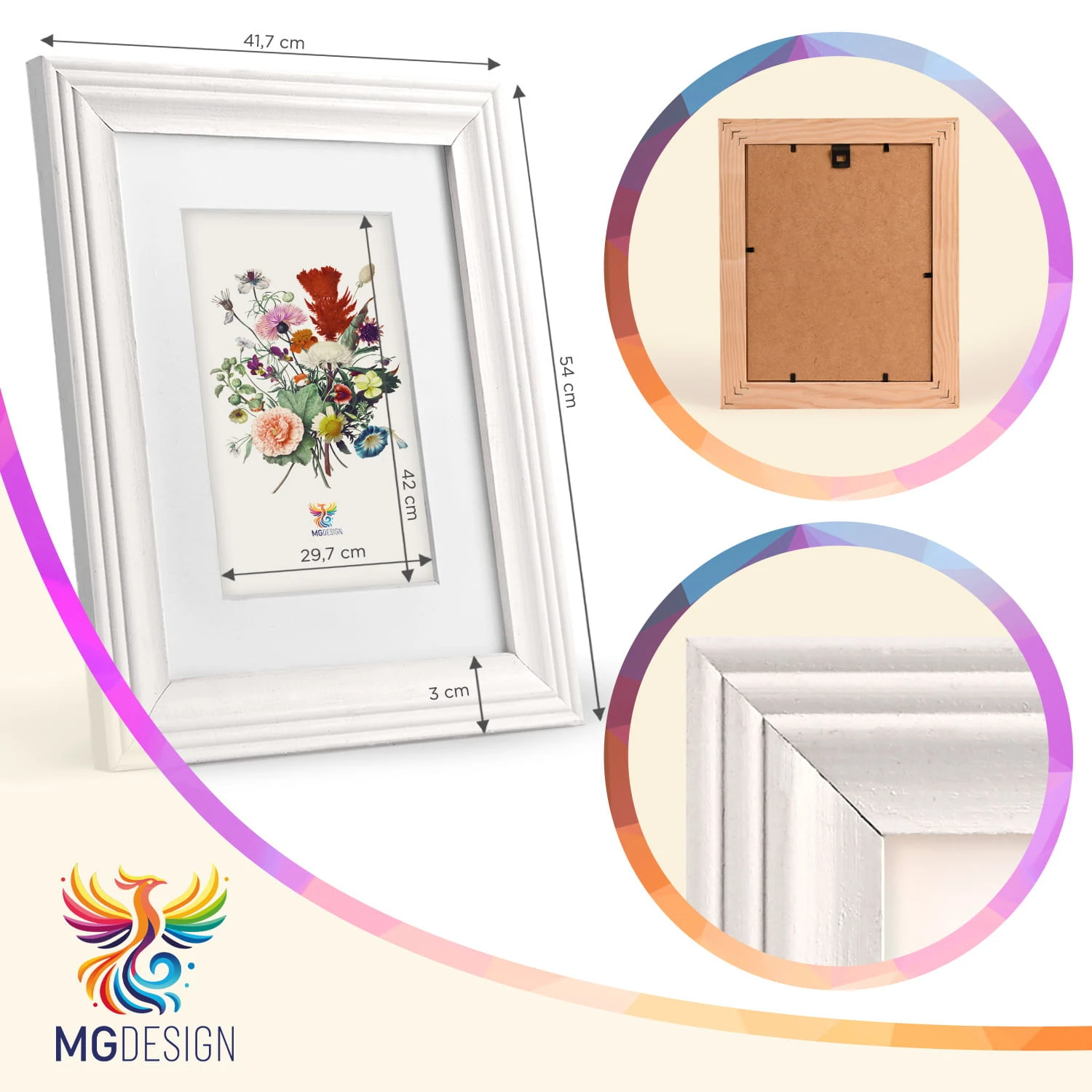 Set of 5 White milled photo frames A3 12 x 17 in (29,7 x 42 cm), made of wood