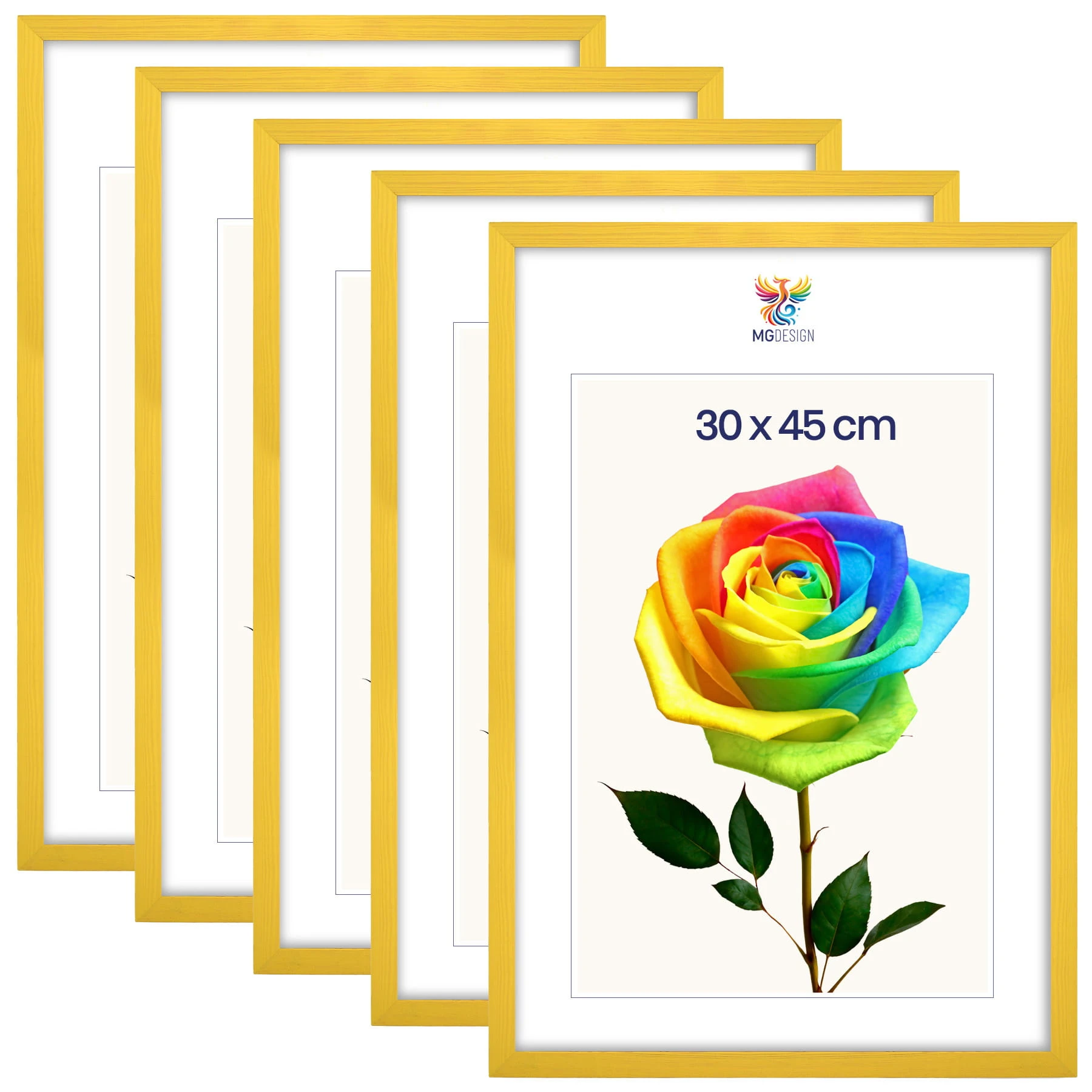 Set of 5 Yellow photo frames 12 x 18 in (30 x 45 cm), made of natural wood