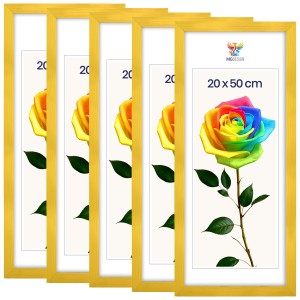 Set of 5 Yellow photo frames 8 x 20 in (20 x 50 cm), made of natural wood