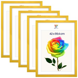 Set of 5 Yellow photo frames A2 17 x 23 in (42 x 59,4 cm), made of natural wood