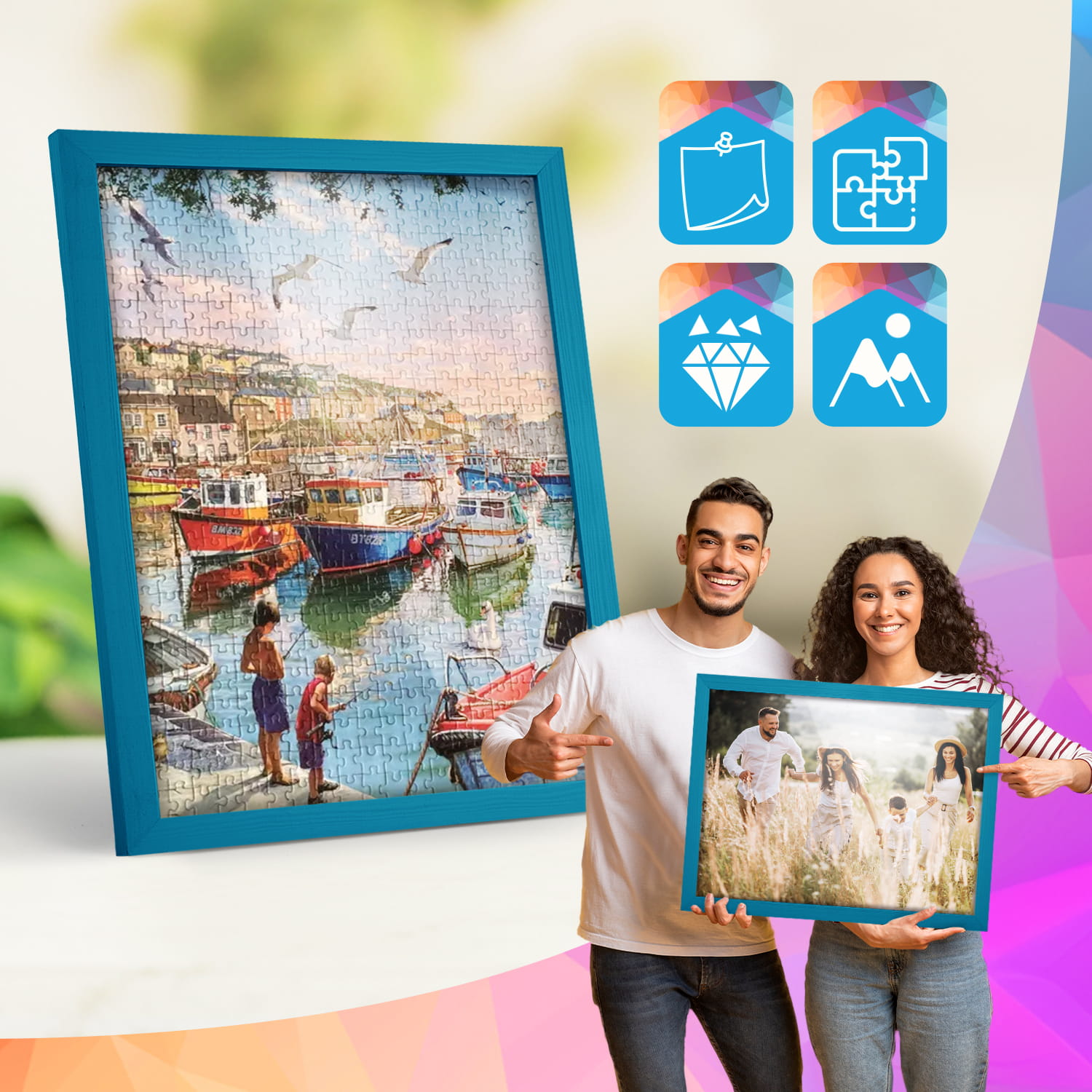Turquoise photo frame 11 x 14 in (28 x 35 cm), made of natural wood