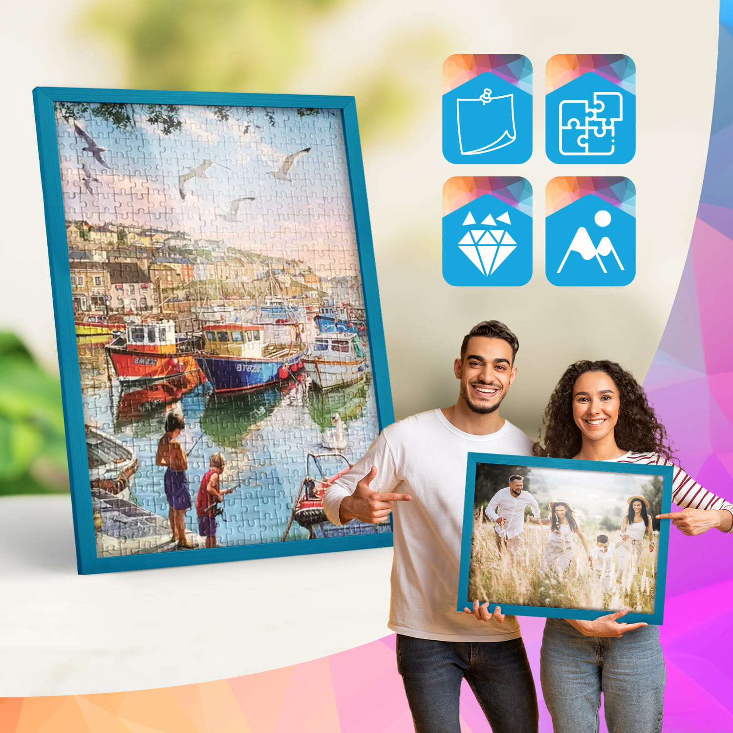 Turquoise photo frame 14 x 20 in (35 x 50 cm), made of natural wood