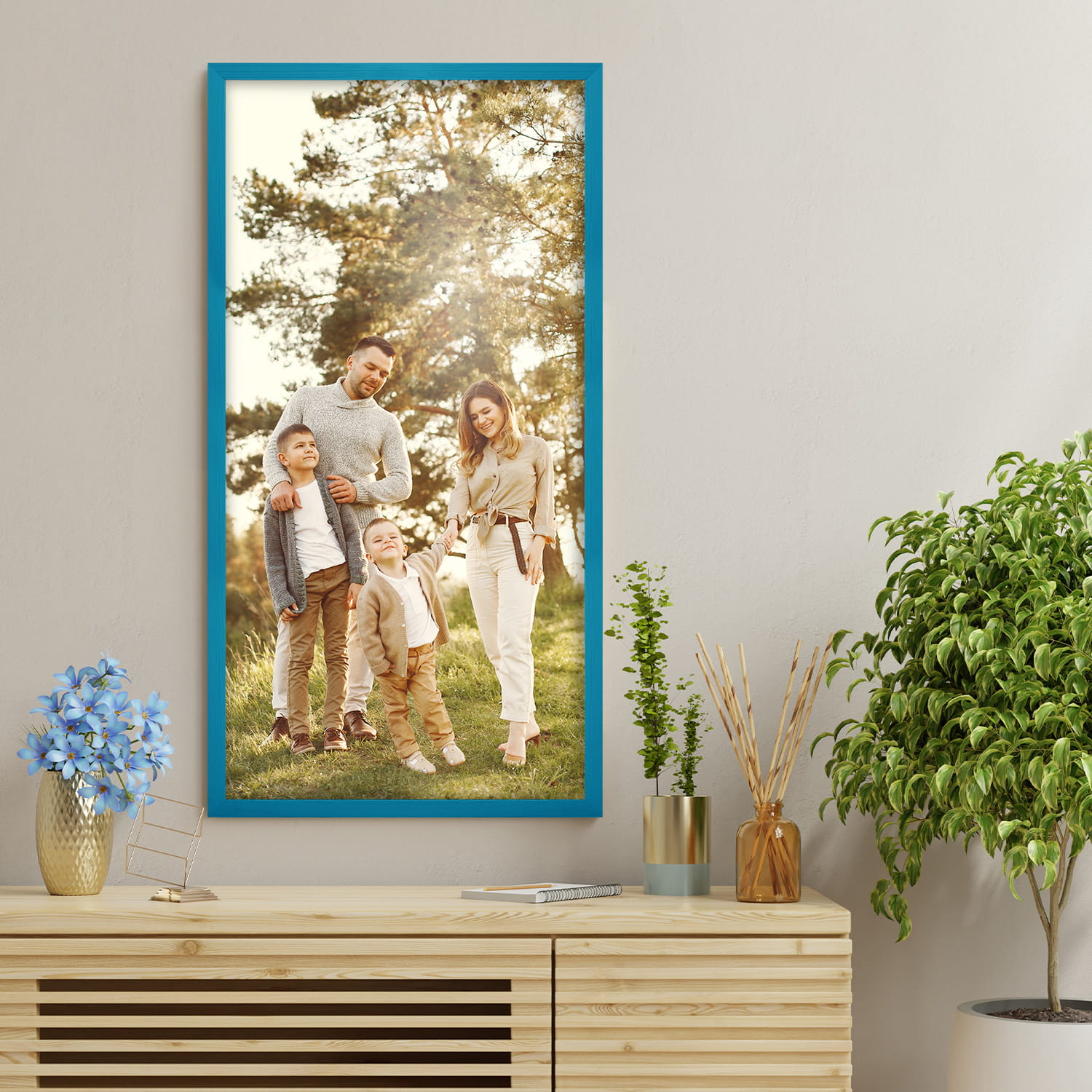 Turquoise photo frame 16 x 32 in (40 x 80 cm), made of natural wood