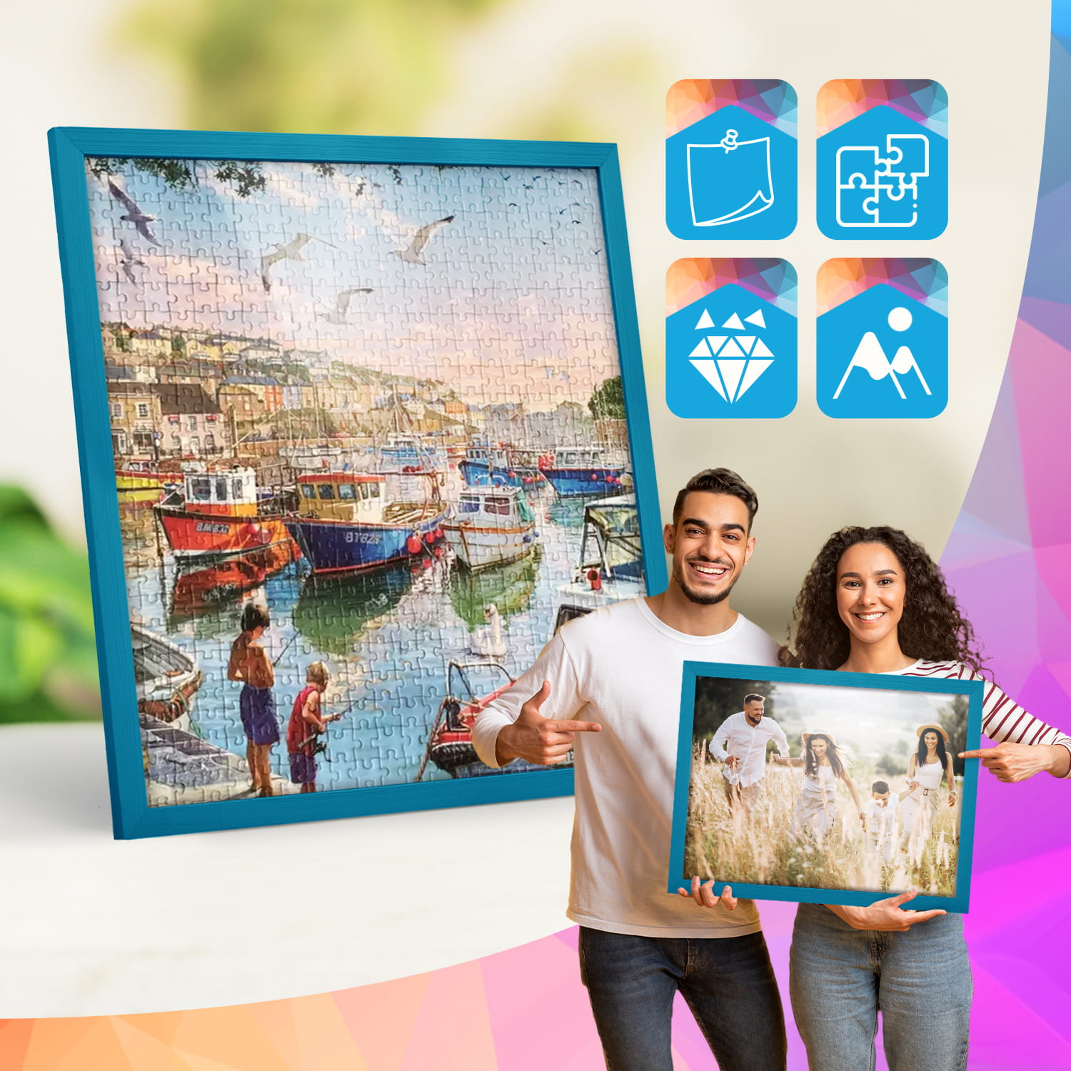 Turquoise photo frame 20 x 20 in (50 x 50 cm), made of natural wood
