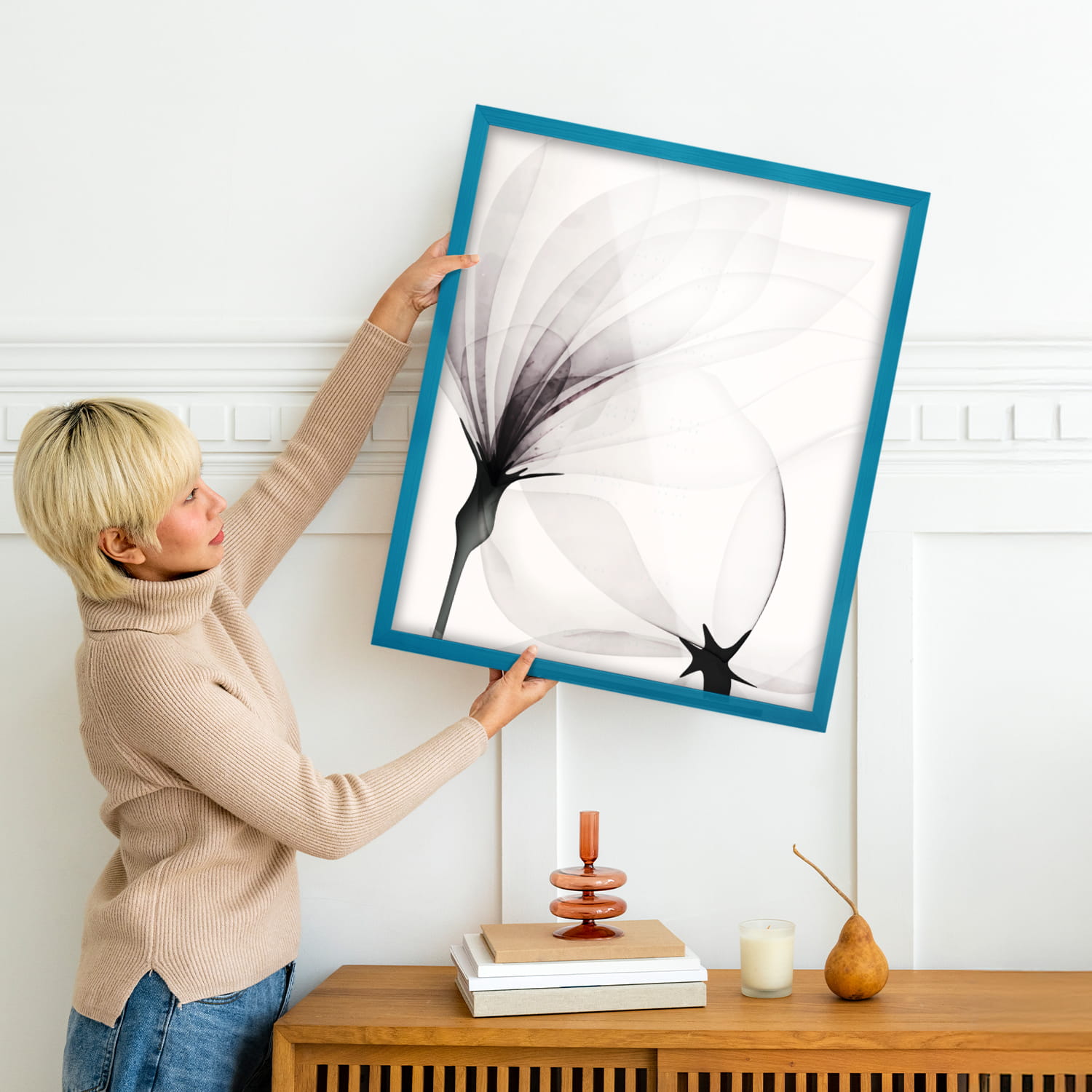 A wooden frame is an aesthetic and universal solution for framing photos, posters, graphics and decorative prints. The classic frame profile gives the frame an elegant look and clearly emphasises the presented motif without dominating the content. The frame is made of carefully processed natural wood, preserving the visible structure of the material, which gives the whole a natural and timeless character. The front of the frame is made of lightweight and damage-resistant plexiglass, which is a safer alternative to traditional glass and ensures good visibility of the framed work. The stable HDF board and solid metal hangers allow for quick installation and easy replacement of the contents without the use of tools.