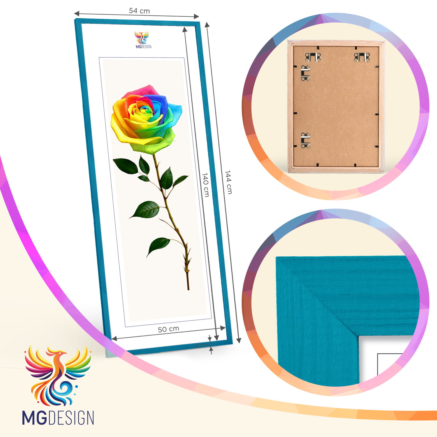 Turquoise photo frame 20 x 55 in (50 x 140 cm), made of natural wood