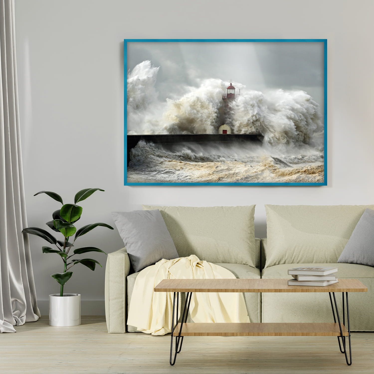 Turquoise photo frame 40 x 55 in (100 x 140 cm), made of natural wood
