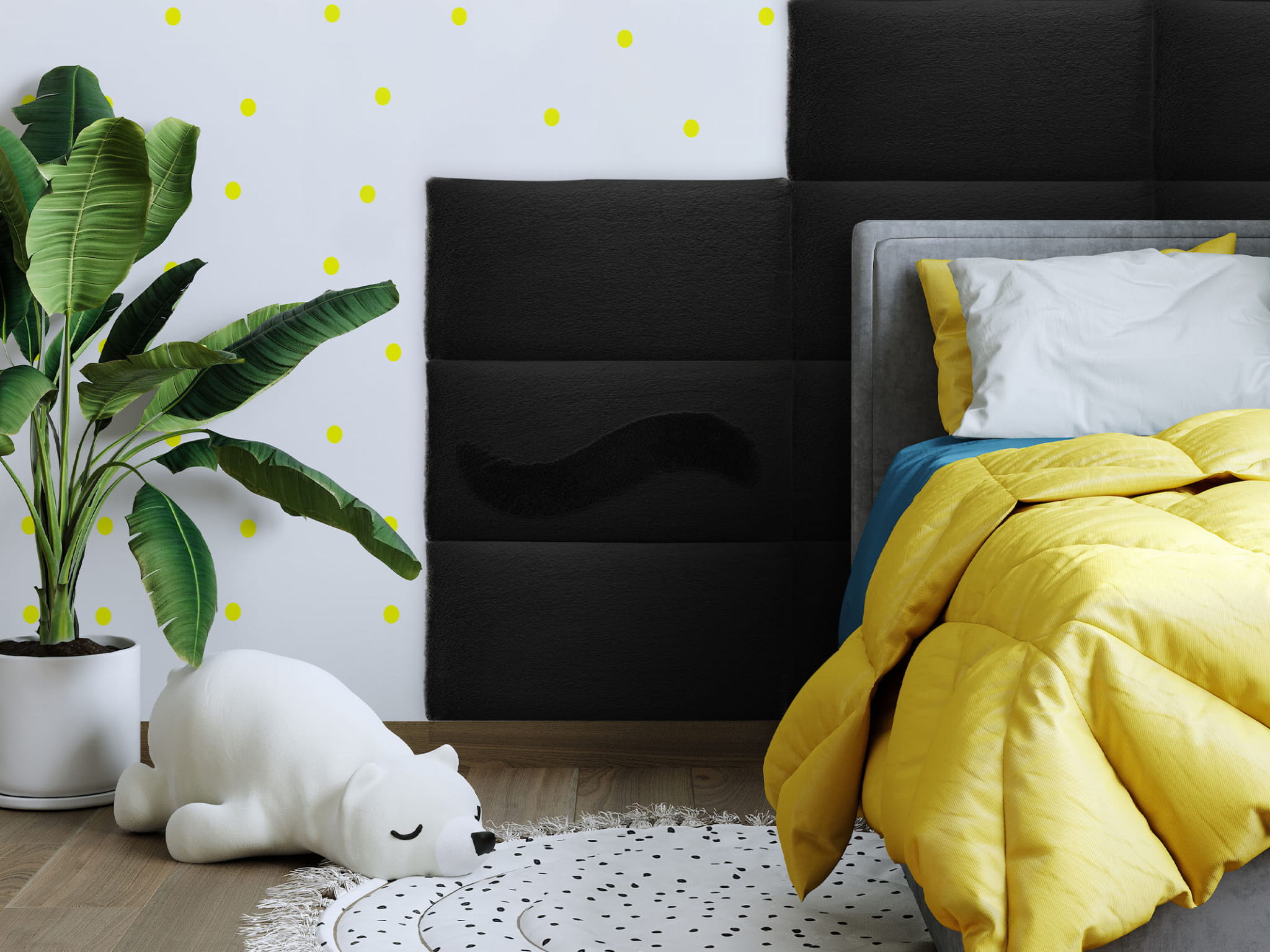 The soft upholstered surface increases comfort and safety, making the panel ideal for use near children’s beds or play areas. Thanks to its sound-absorbing properties, it helps reduce noise and echo, improving acoustic comfort in bedrooms and children’s rooms. The modular design allows you to combine multiple panels to create larger headboards, feature walls or customised layouts tailored to your interior style.