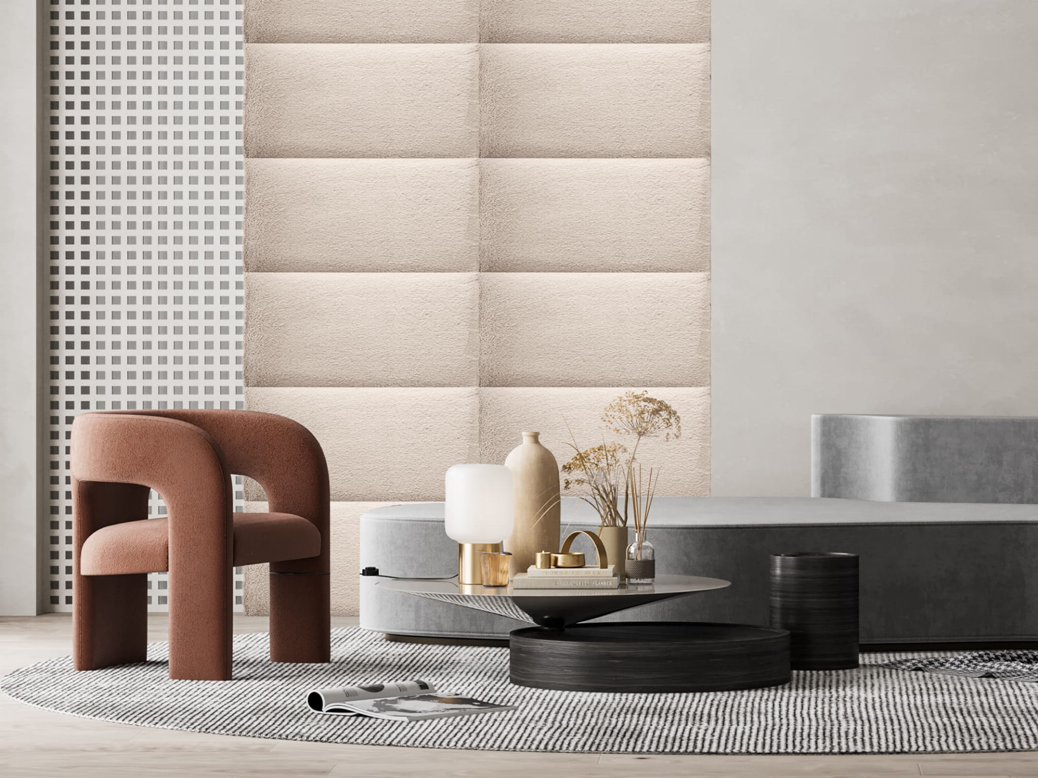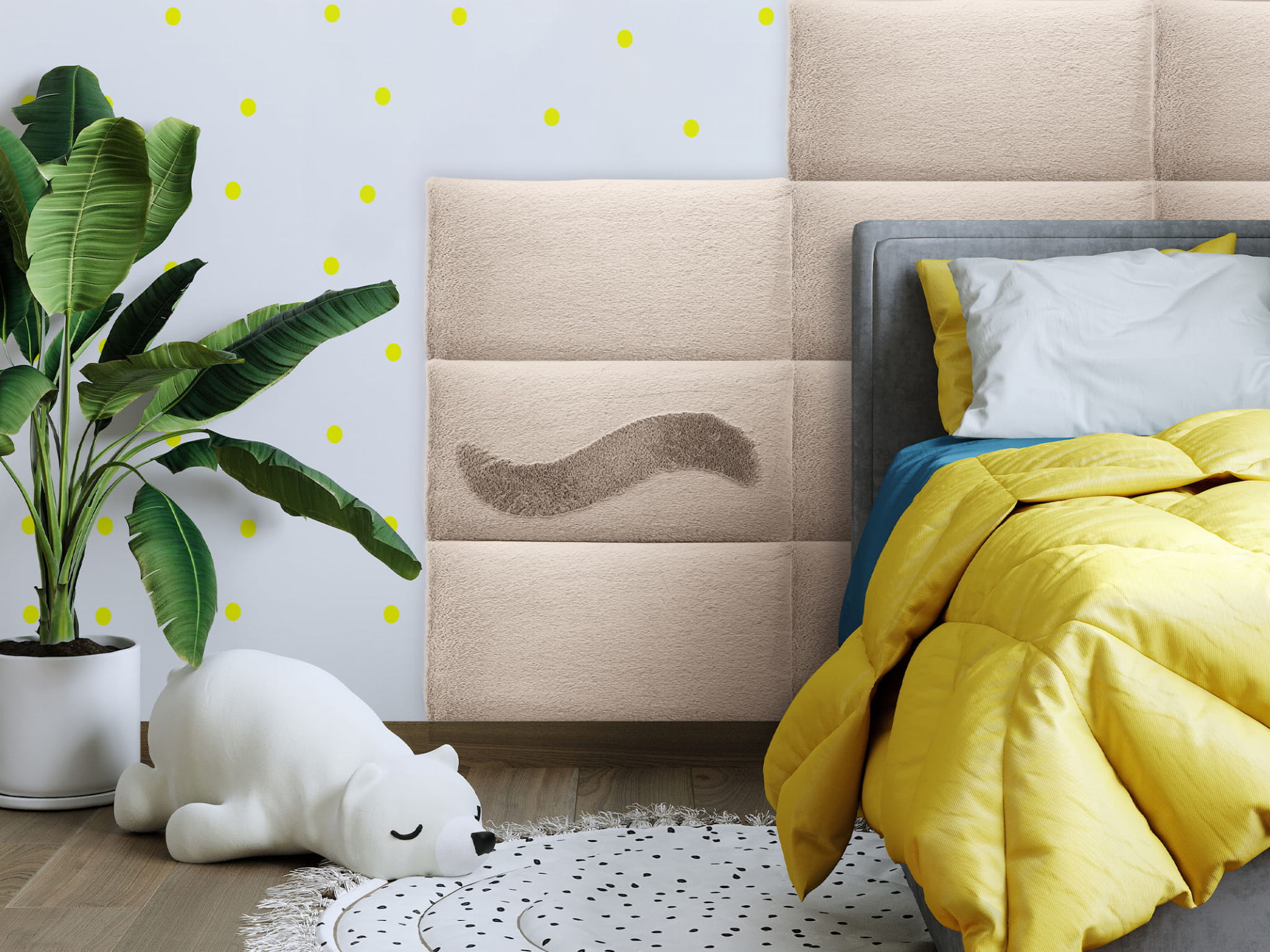 The soft upholstered surface increases comfort and safety, making the panel ideal for use near children’s beds or play areas. Thanks to its sound-absorbing properties, it helps reduce noise and echo, improving acoustic comfort in bedrooms and children’s rooms. The modular design allows you to combine multiple panels to create larger headboards, feature walls or customised layouts tailored to your interior style.