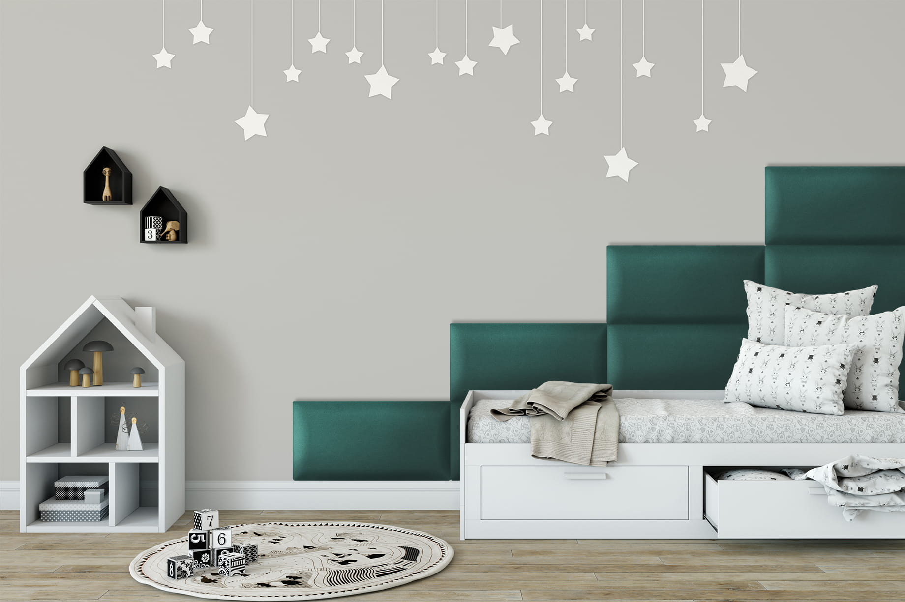 The soft upholstered surface increases comfort and safety, making the panel ideal for use near children’s beds or play areas. Thanks to its sound-absorbing properties, it helps reduce noise and echo, improving acoustic comfort in bedrooms and children’s rooms. The modular design allows you to combine multiple panels to create larger headboards, feature walls or customised layouts tailored to your interior style.