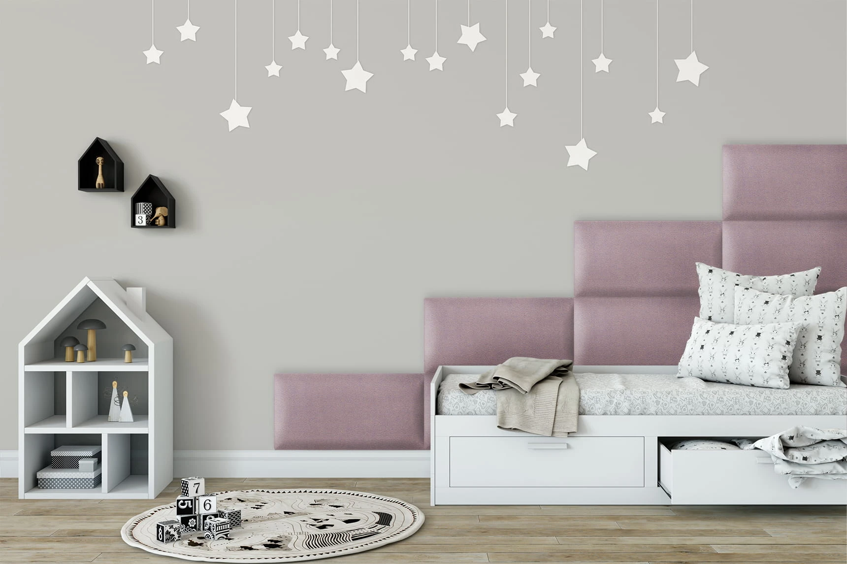 The soft upholstered surface increases comfort and safety, making the panel ideal for use near children’s beds or play areas. Thanks to its sound-absorbing properties, it helps reduce noise and echo, improving acoustic comfort in bedrooms and children’s rooms. The modular design allows you to combine multiple panels to create larger headboards, feature walls or customised layouts tailored to your interior style.