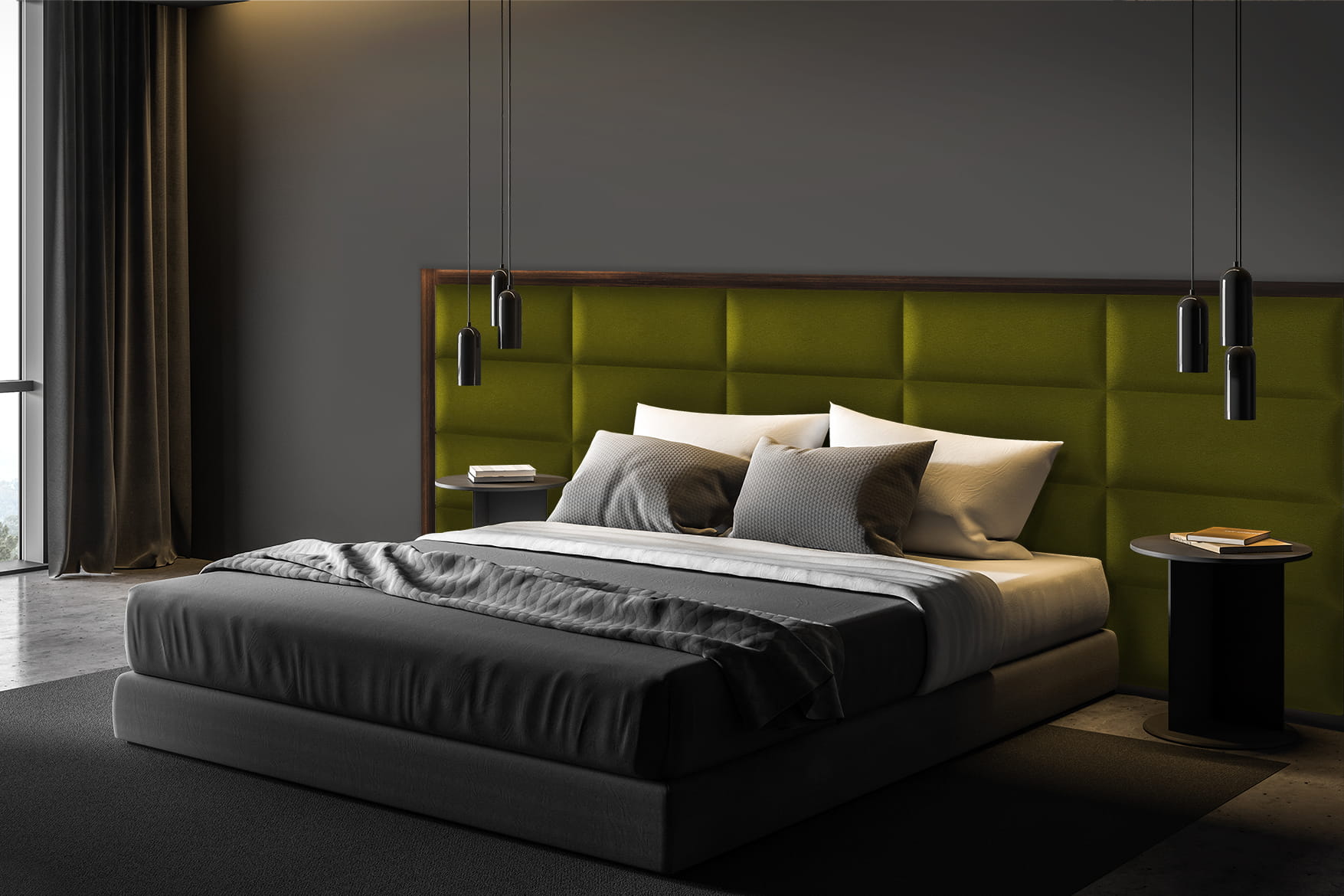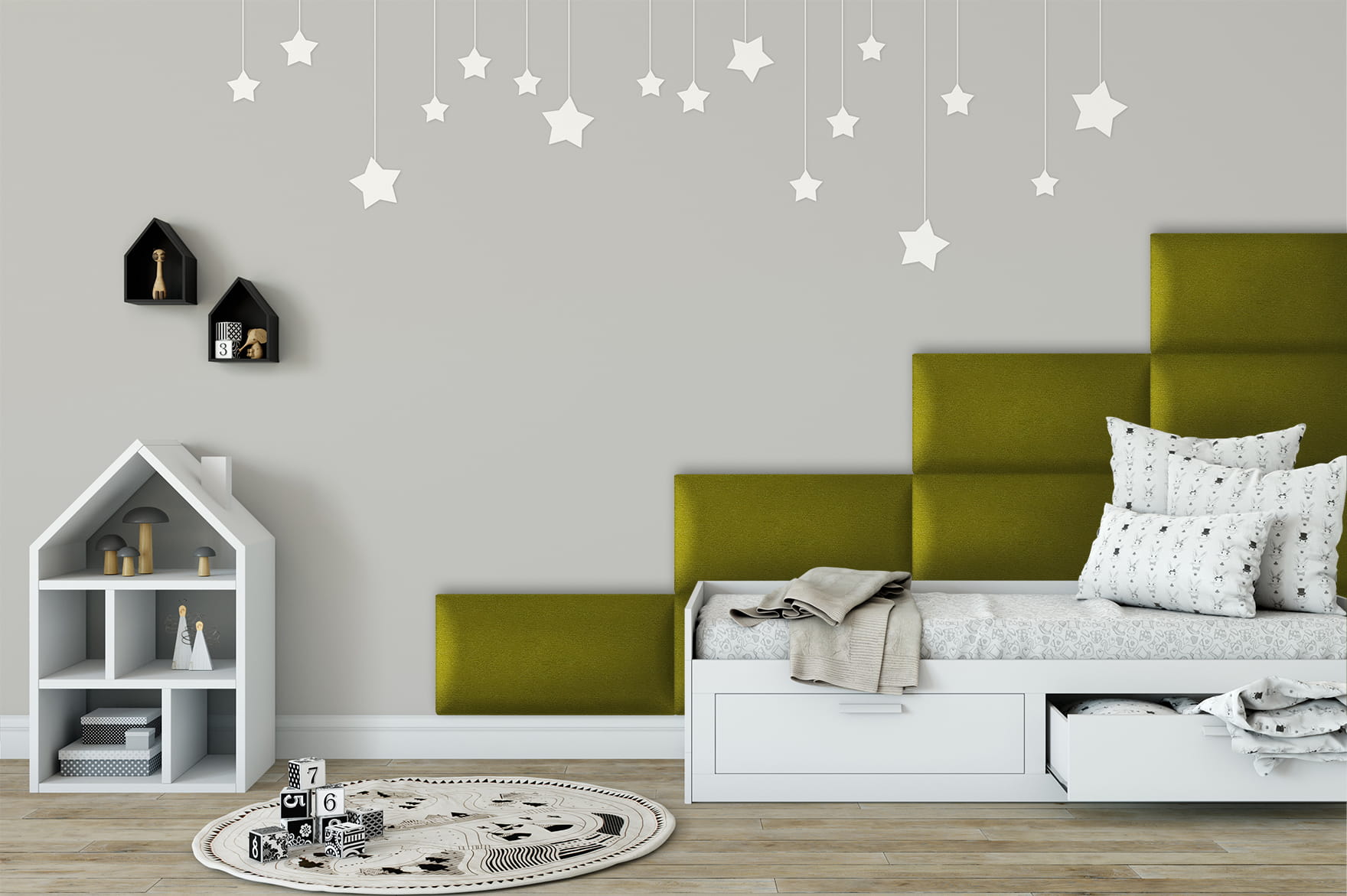 The soft upholstered surface increases comfort and safety, making the panel ideal for use near children’s beds or play areas. Thanks to its sound-absorbing properties, it helps reduce noise and echo, improving acoustic comfort in bedrooms and children’s rooms. The modular design allows you to combine multiple panels to create larger headboards, feature walls or customised layouts tailored to your interior style.