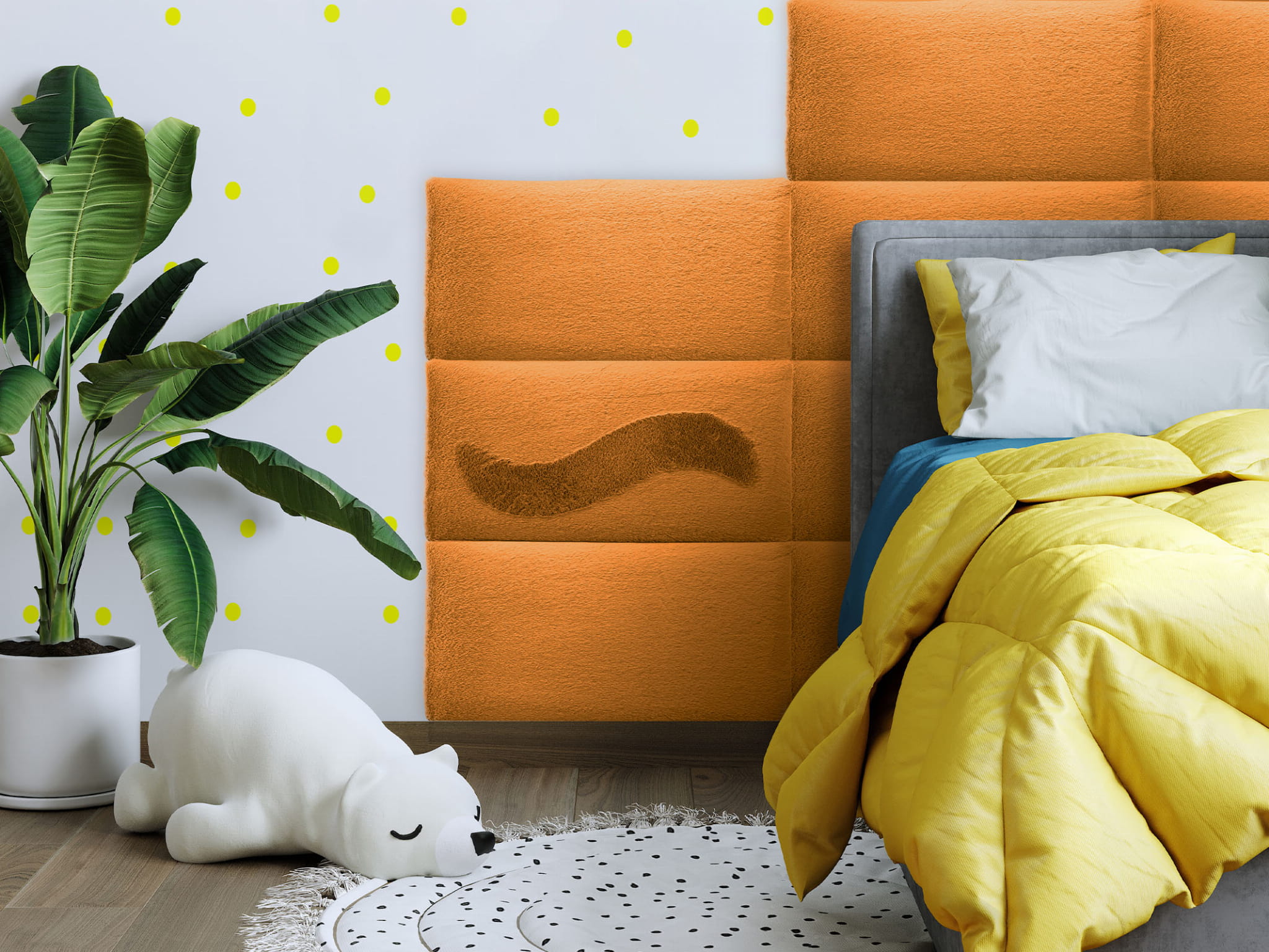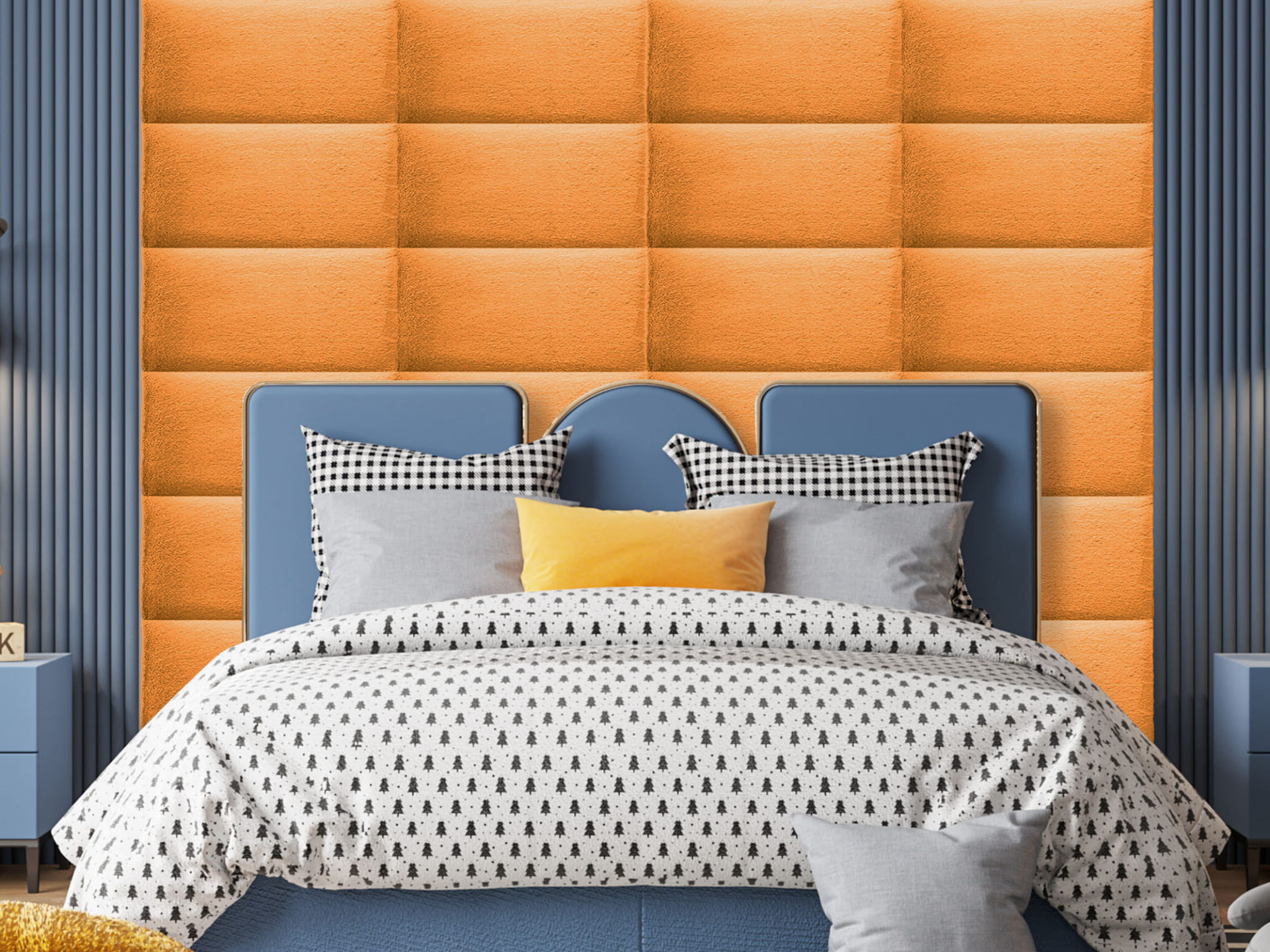 The soft upholstered surface increases comfort and safety, making the panel ideal for use near children’s beds or play areas. Thanks to its sound-absorbing properties, it helps reduce noise and echo, improving acoustic comfort in bedrooms and children’s rooms. The modular design allows you to combine multiple panels to create larger headboards, feature walls or customised layouts tailored to your interior style.