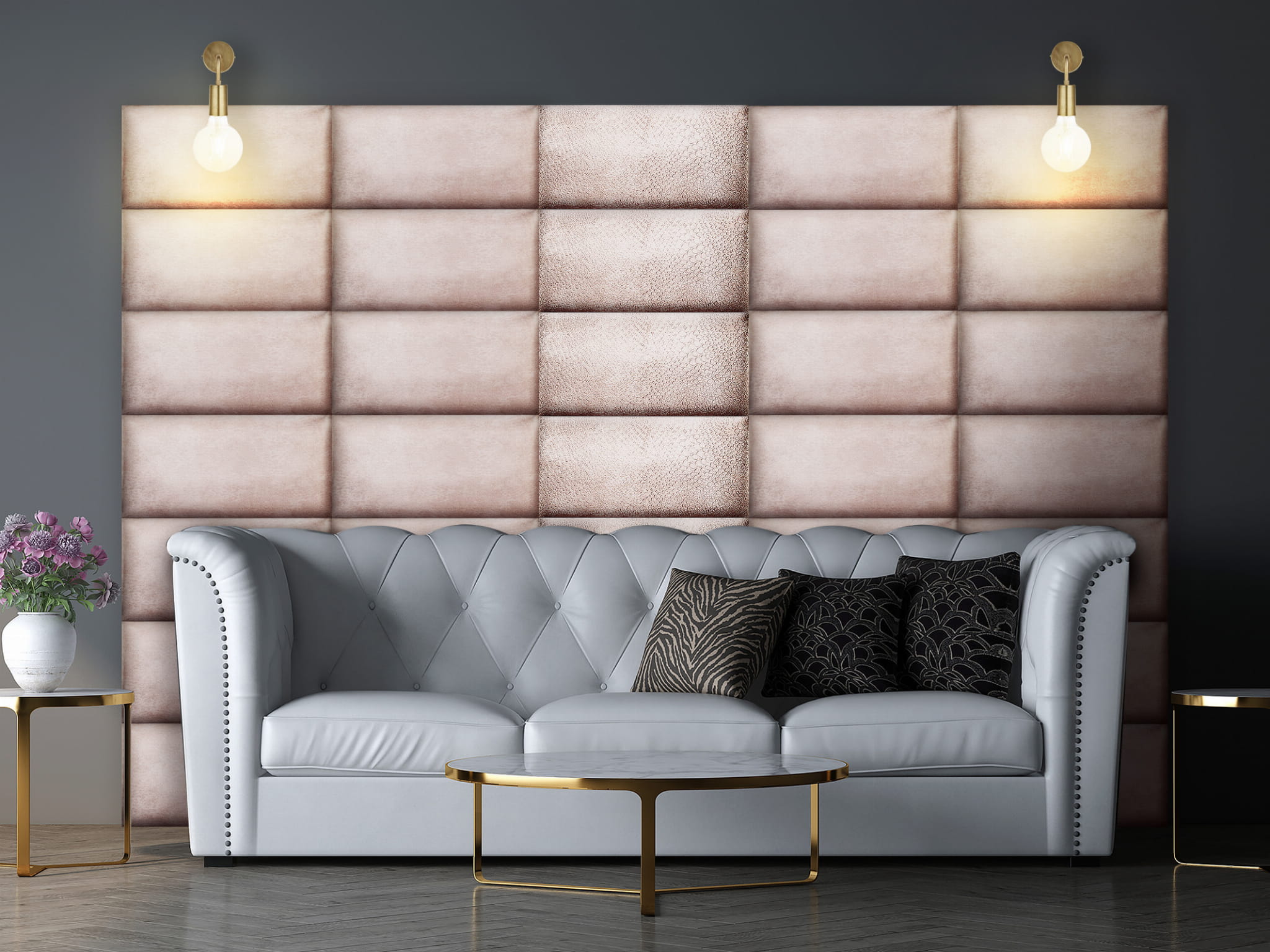 Upholstered Powder Pink Wall Panel 12 x 24 in (30 x 60 cm)