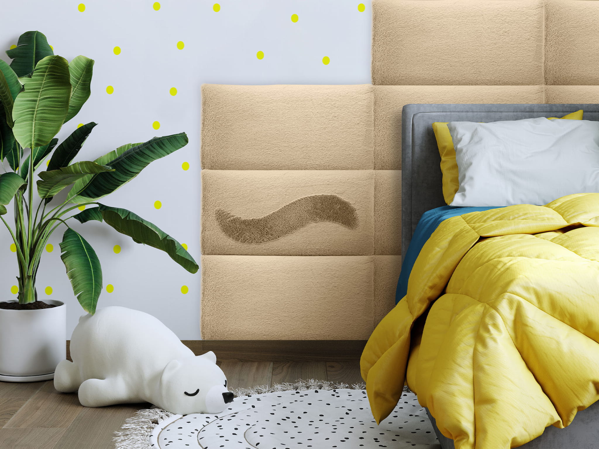 The soft upholstered surface increases comfort and safety, making the panel ideal for use near children’s beds or play areas. Thanks to its sound-absorbing properties, it helps reduce noise and echo, improving acoustic comfort in bedrooms and children’s rooms. The modular design allows you to combine multiple panels to create larger headboards, feature walls or customised layouts tailored to your interior style.