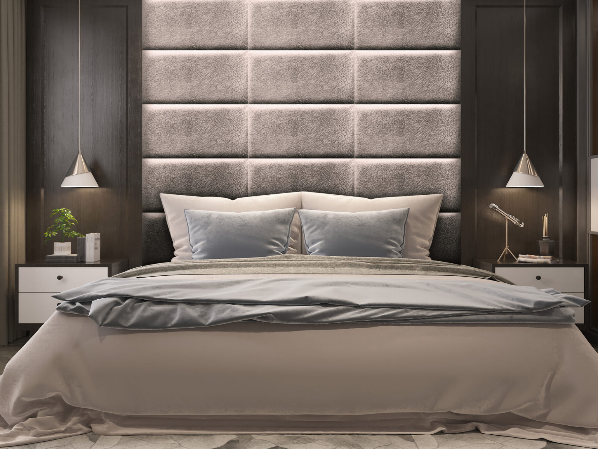 An upholstered wall panel is a practical and stylish way to enhance comfort, safety and visual appeal in your home. This rectangular 12 x 24 in (30 x 60 cm) panel works perfectly as a soft headboard behind a bed, a comfortable backrest or seating support, and a decorative wall feature that adds warmth and structure to bedrooms, hallways and living spaces. It is also an excellent solution for protecting walls from everyday wear while improving the overall feel of the room.