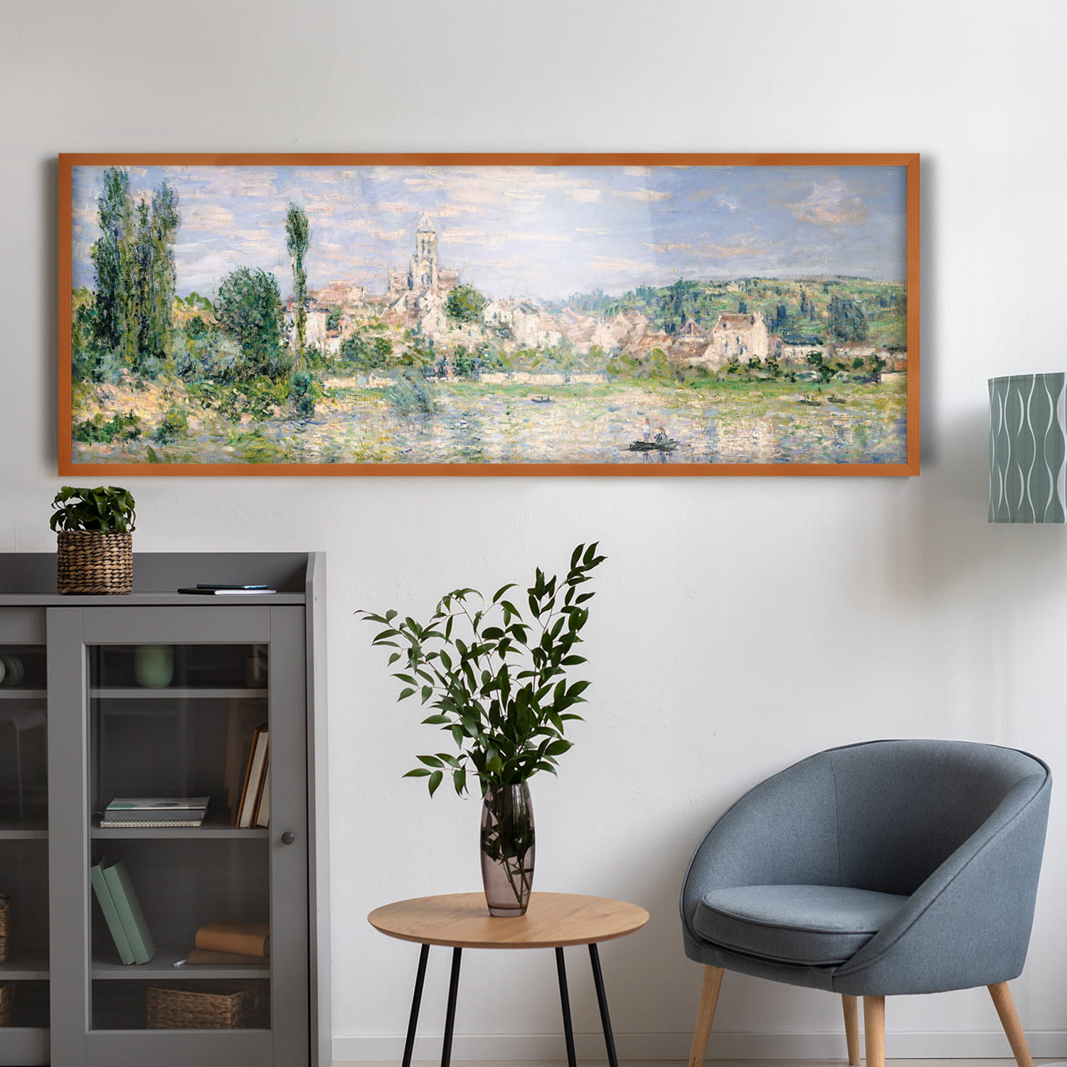 Varnished photo frame 14 x 40 in (35 x 100 cm), made of natural wood