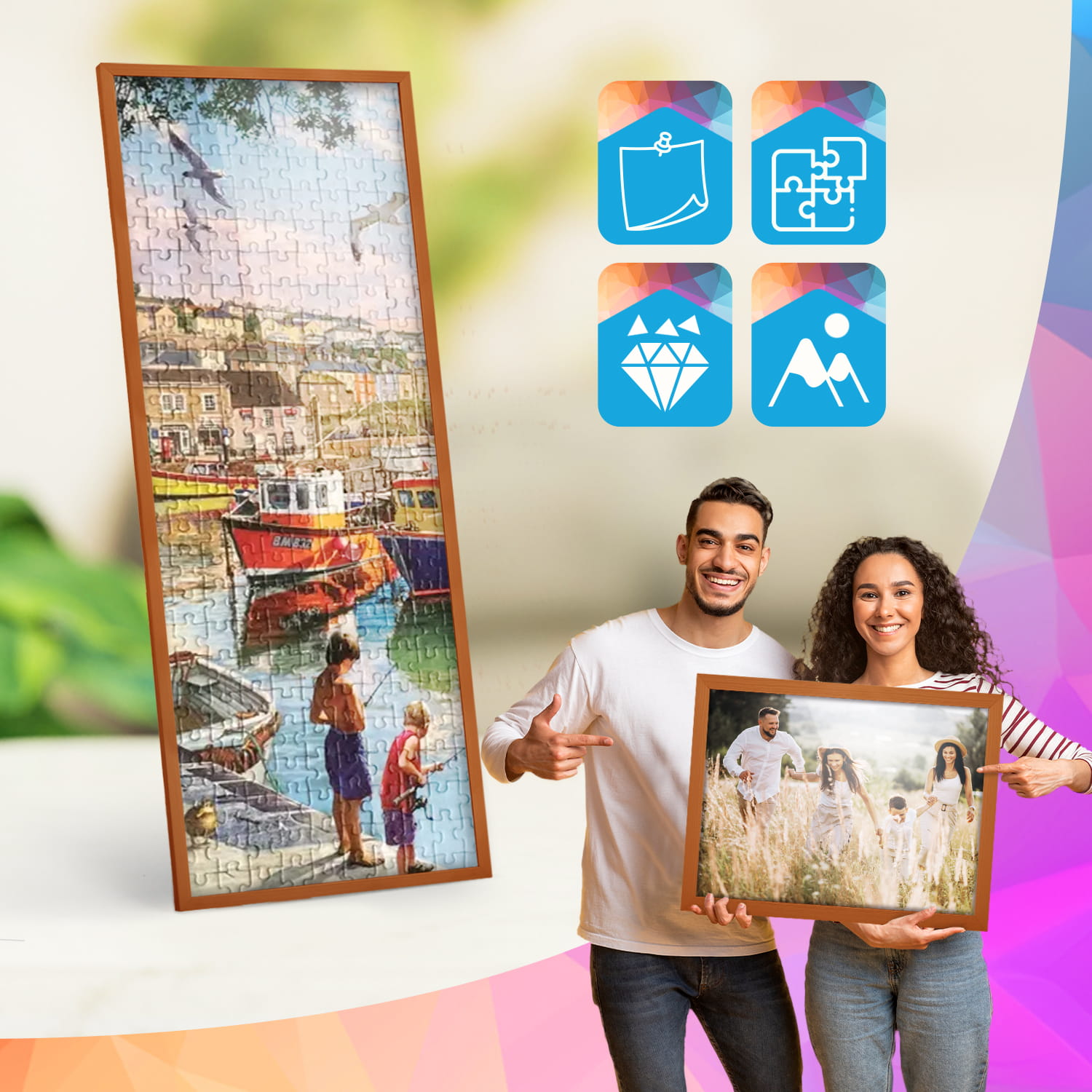 A wooden frame is an aesthetic and universal solution for framing photos, posters, graphics and decorative prints. The classic frame profile gives the frame an elegant look and clearly emphasises the presented motif without dominating the content. The frame is made of carefully processed natural wood, preserving the visible structure of the material, which gives the whole a natural and timeless character. The front of the frame is made of lightweight and damage-resistant plexiglass, which is a safer alternative to traditional glass and ensures good visibility of the framed work. The stable HDF board and solid metal hangers allow for quick installation and easy replacement of the contents without the use of tools.